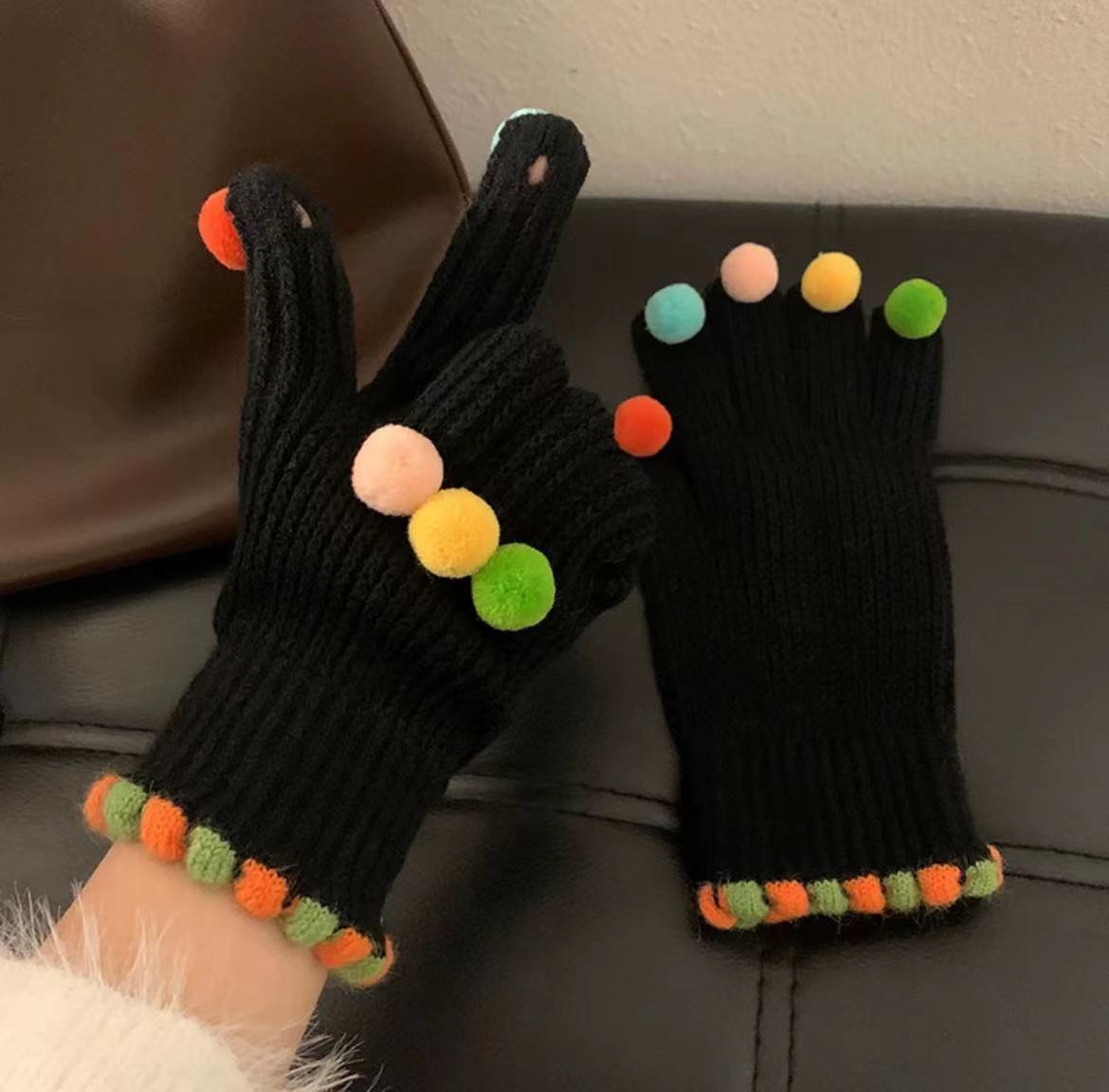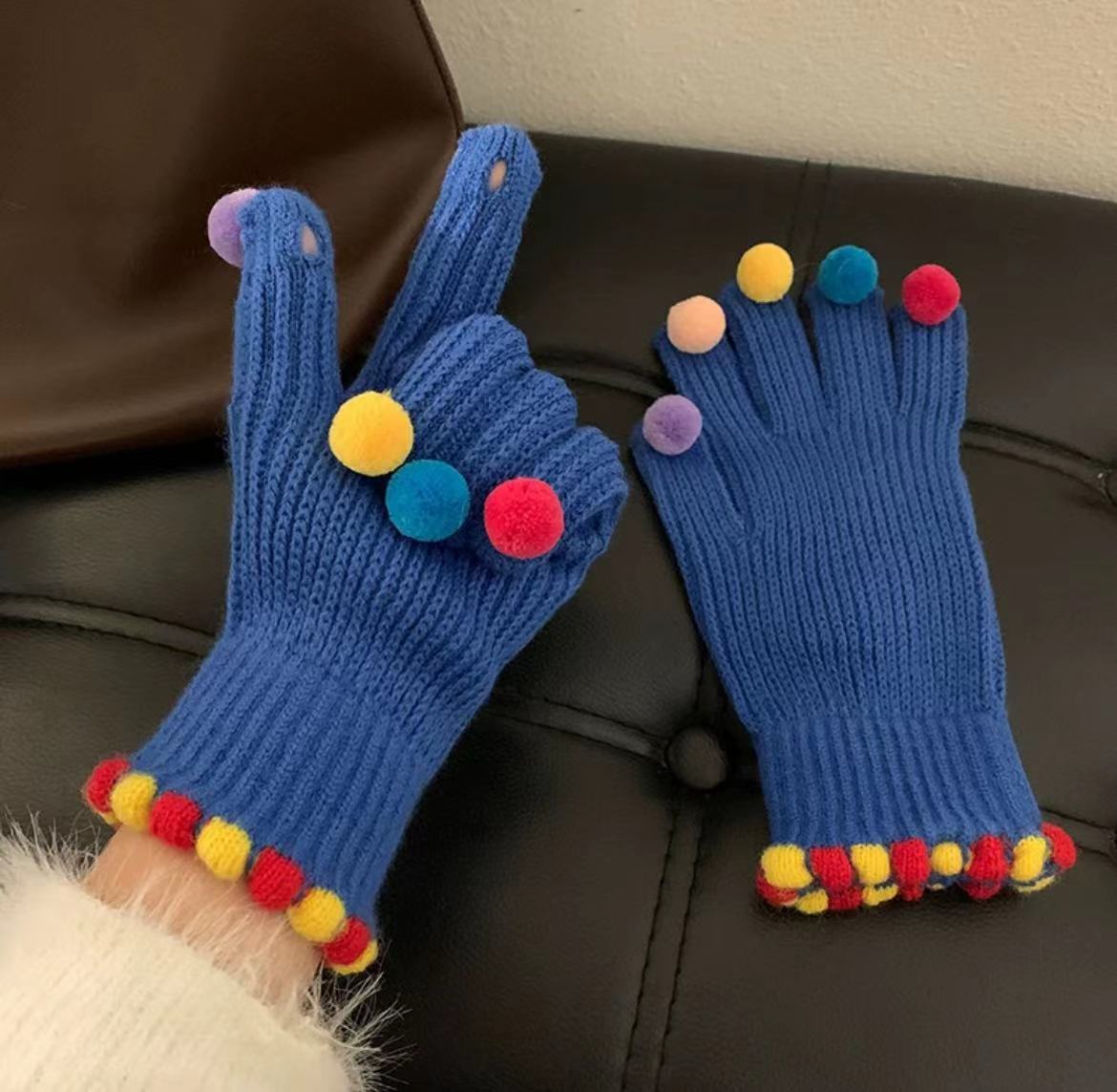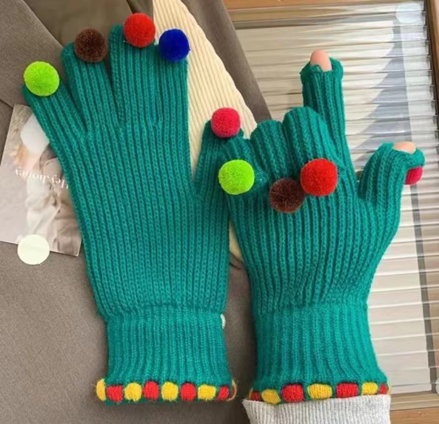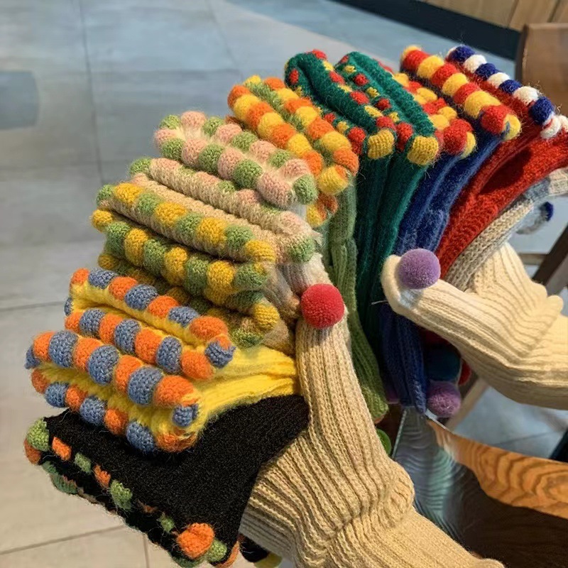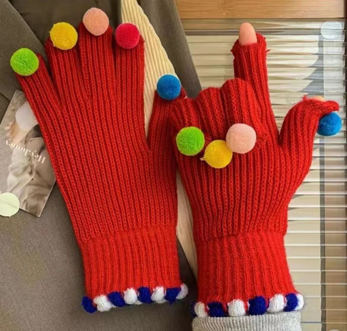 터치 스크린 컬러 울 볼 장갑의 한국어 버전 니트 울 따뜻한 가을과 겨울 사이클링 두꺼운 방한 캔디 컬러 오픈 손가락