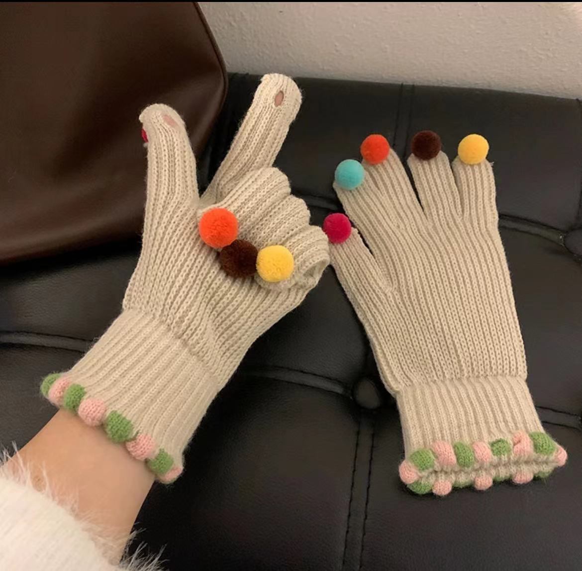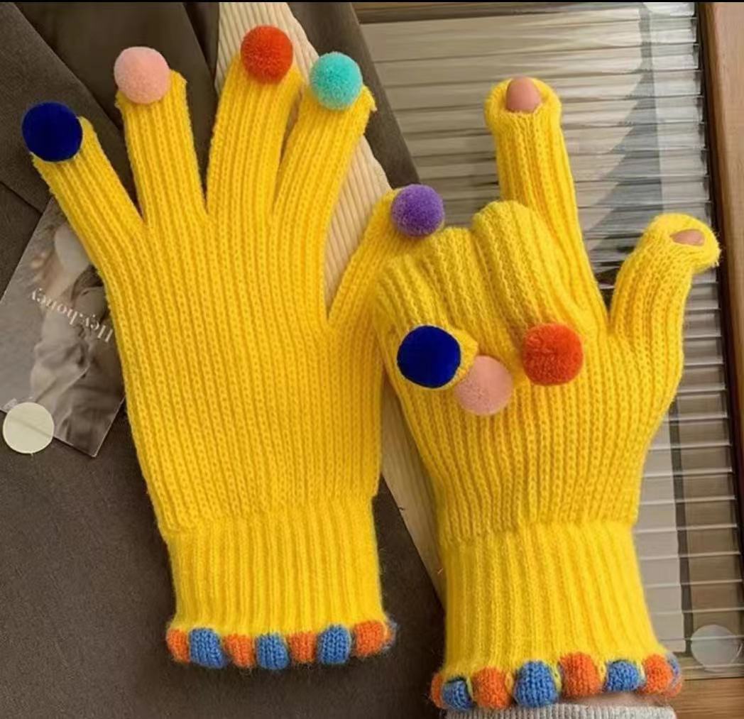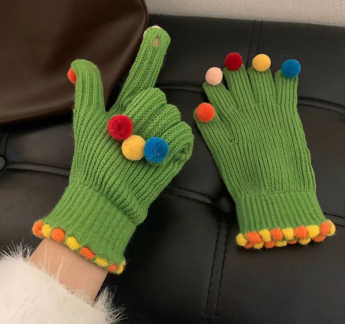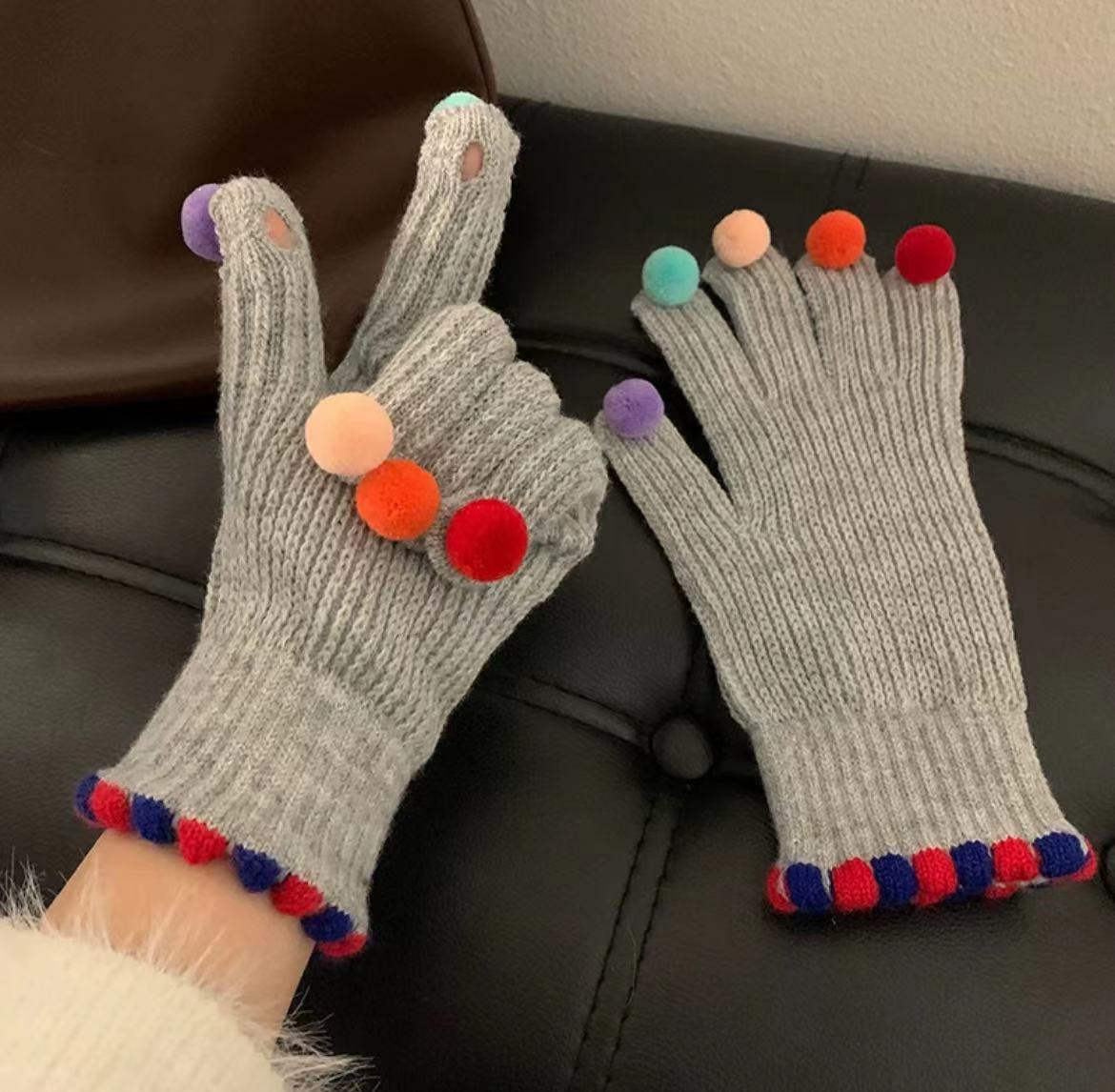 터치 스크린 컬러 울 볼 장갑의 한국어 버전 니트 울 따뜻한 가을과 겨울 사이클링 두꺼운 방한 캔디 컬러 오픈 손가락