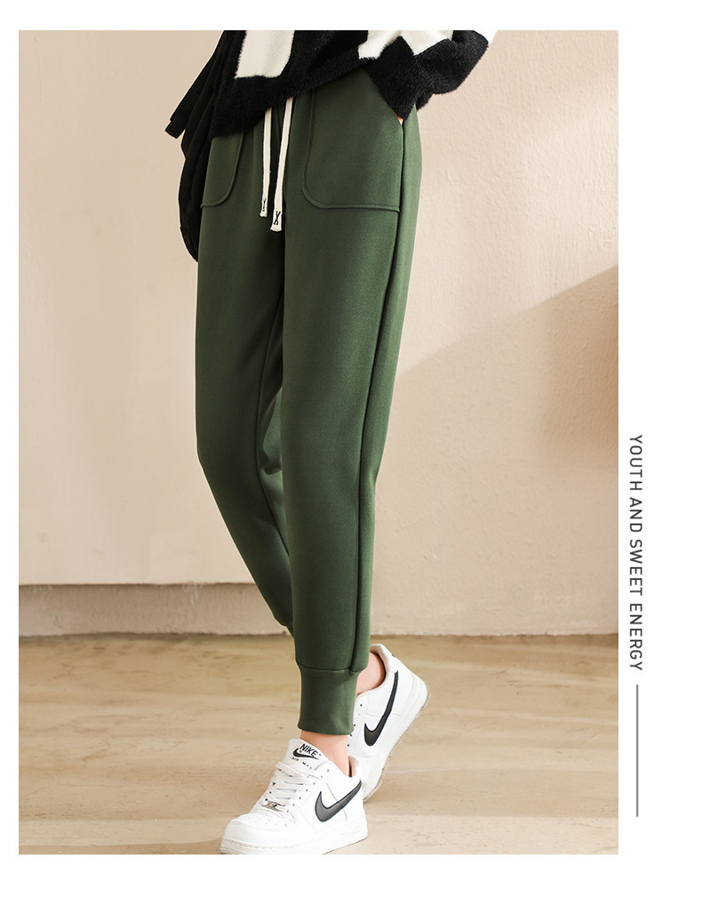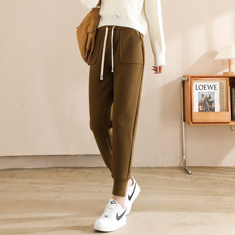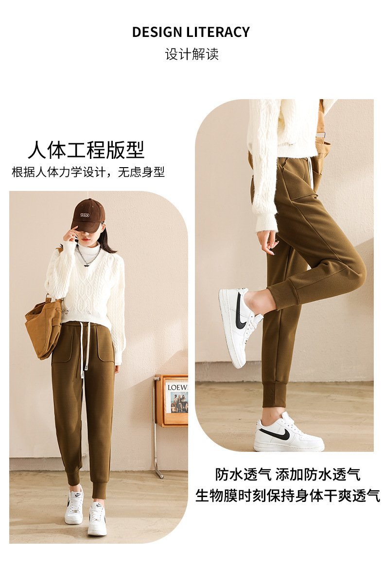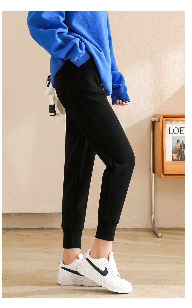 방풍 바지 여자의 가을과 겨울 신상품 다리 슬리밍 스포츠 바지 기모 두꺼운 하이 웨이스트 무 Harlan 캐주얼 바지