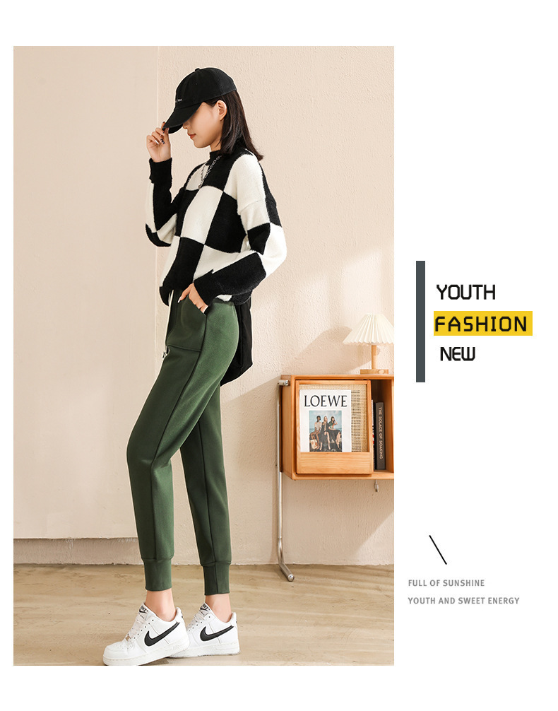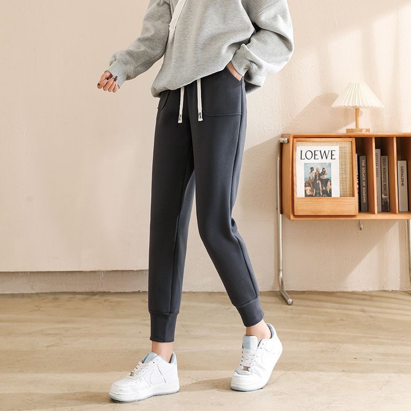 방풍 바지 여자의 가을과 겨울 신상품 다리 슬리밍 스포츠 바지 기모 두꺼운 하이 웨이스트 무 Harlan 캐주얼 바지스토어 가기