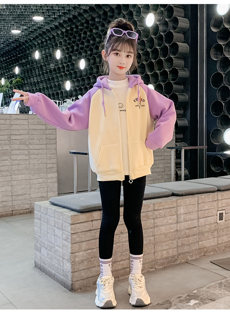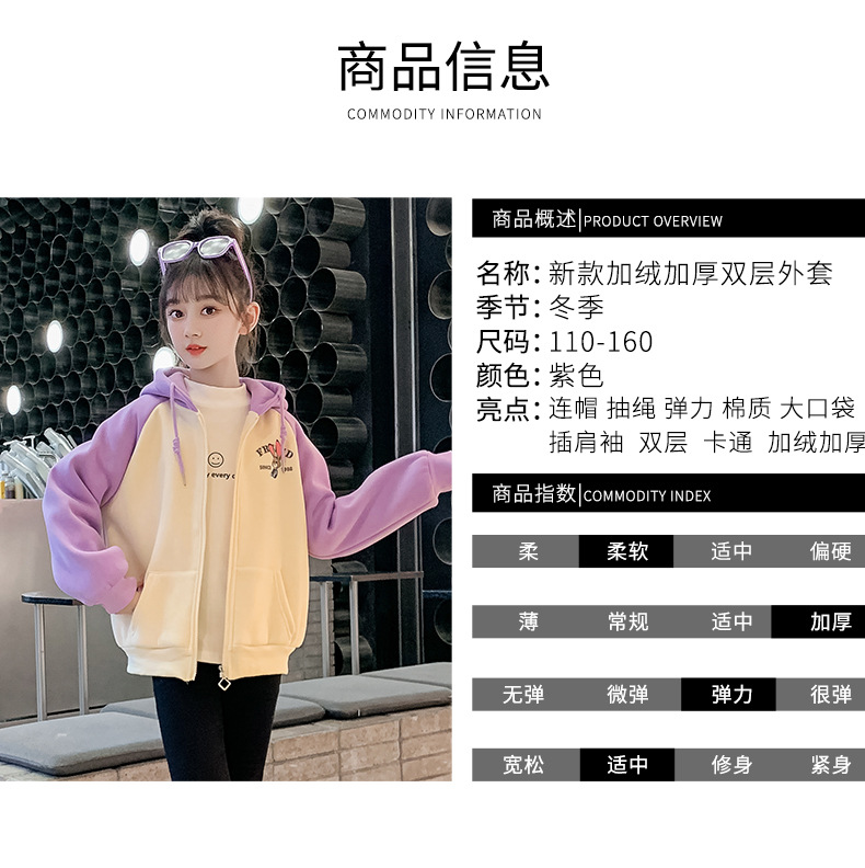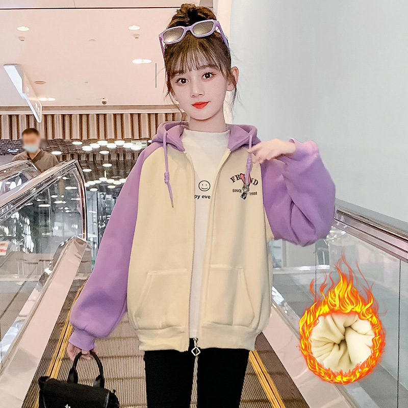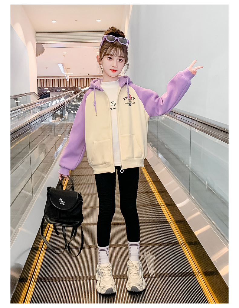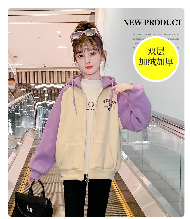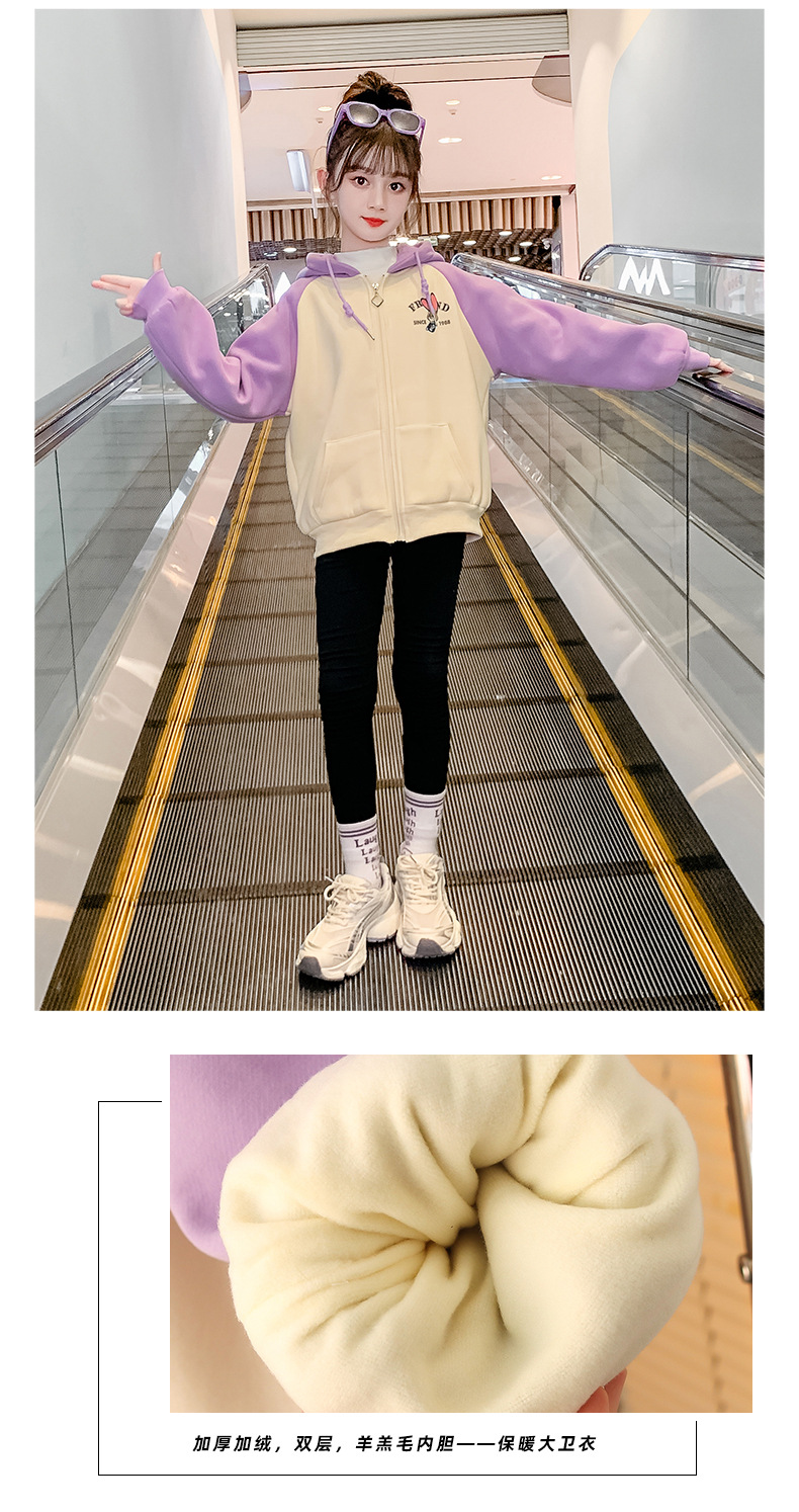 여아용 2025 겨울 기모 두꺼운 재킷 지퍼 후드 폴라 플리스 배색 스포츠 양털 따뜻한 코트스토어 가기