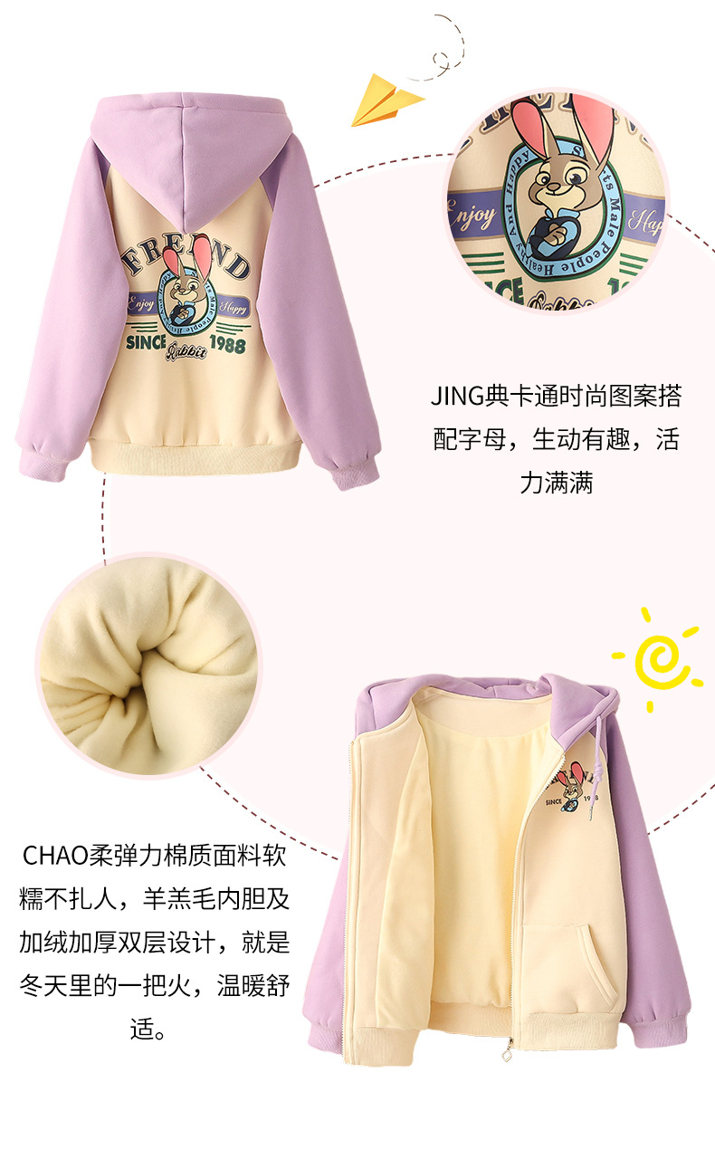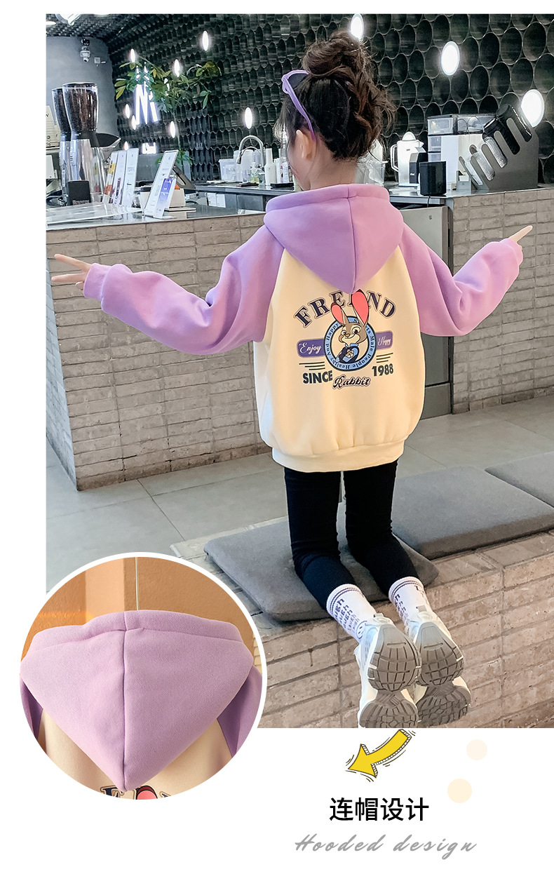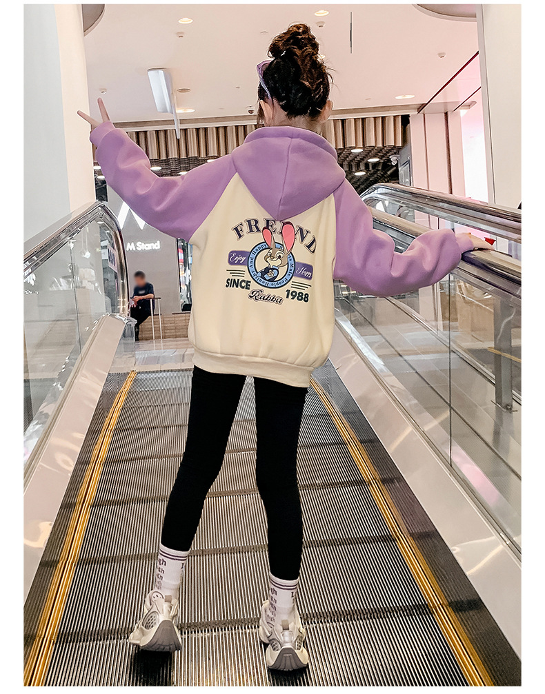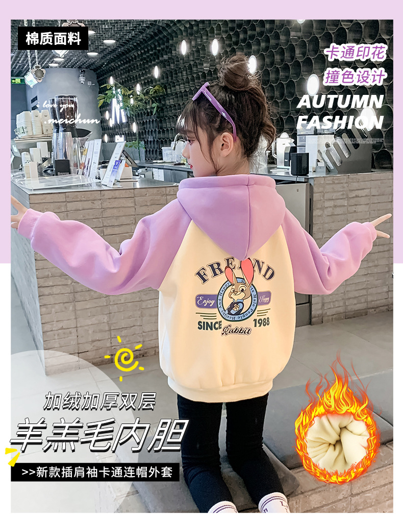 여아용 2025 겨울 기모 두꺼운 재킷 지퍼 후드 폴라 플리스 배색 스포츠 양털 따뜻한 코트