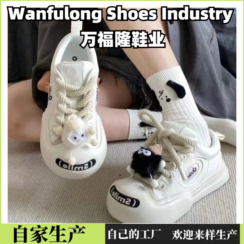 2023 미터 흰색 못생긴 귀여운 입을 벌리고 미소 일본식 높은 머리 신발 높은 색상 값 트렌드 다목적 여성 신발 만화 스케이트 보드 신발