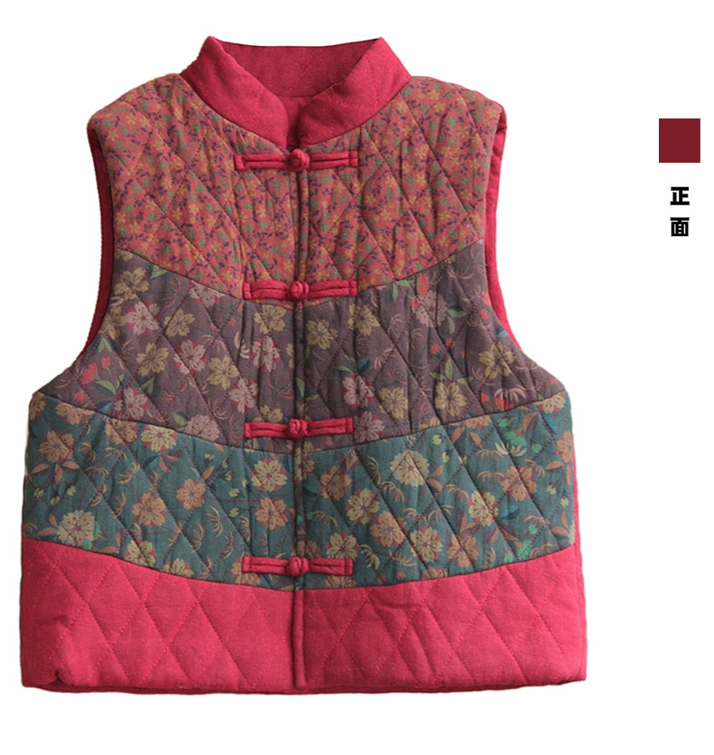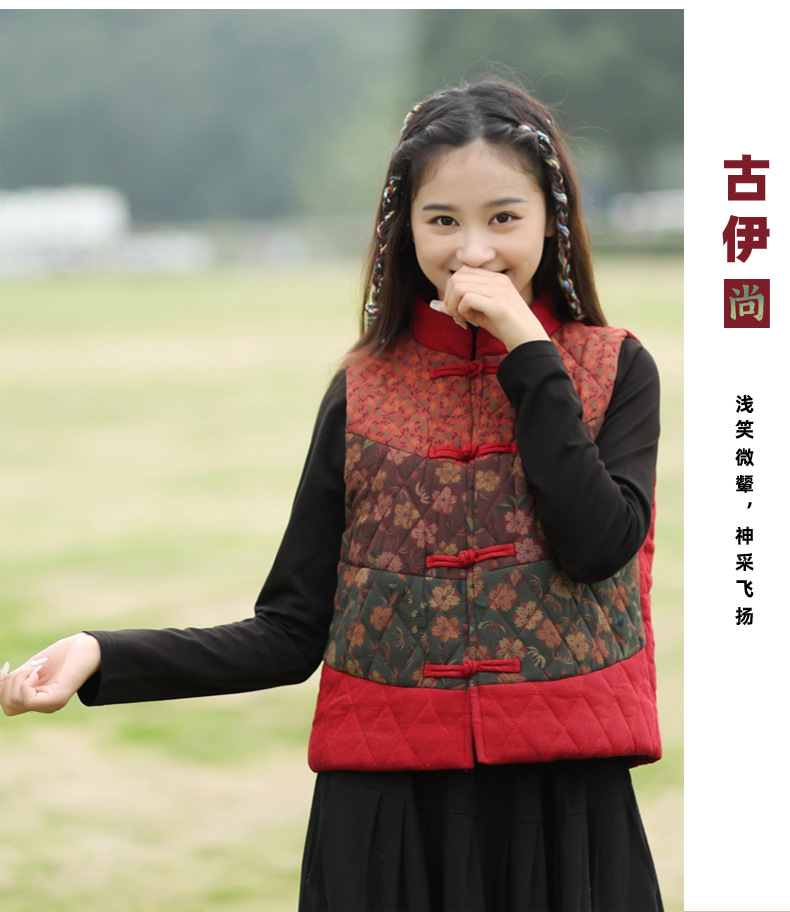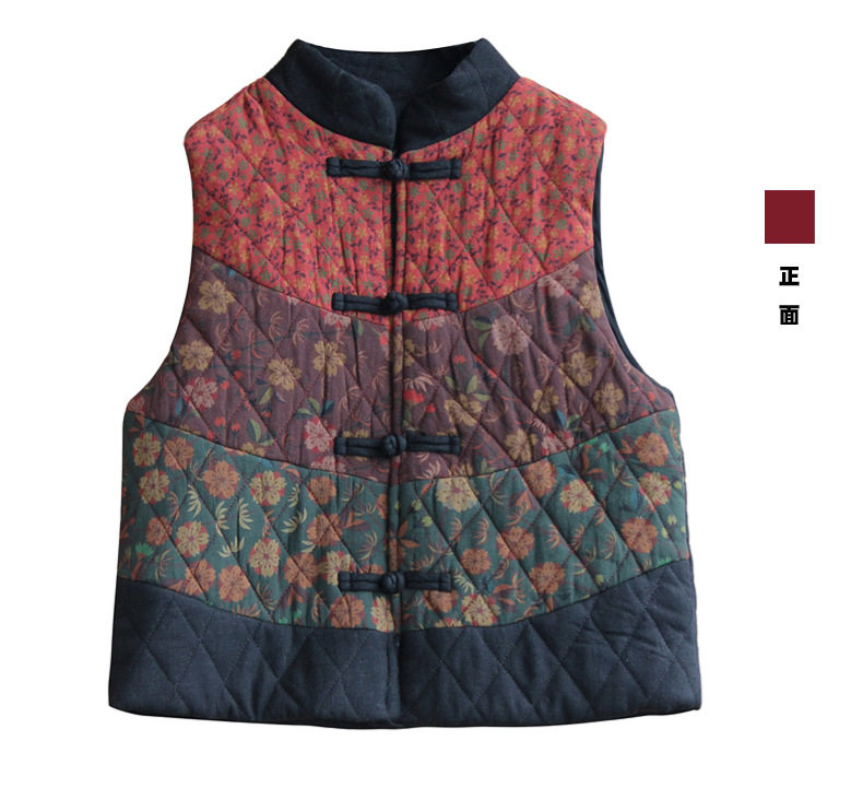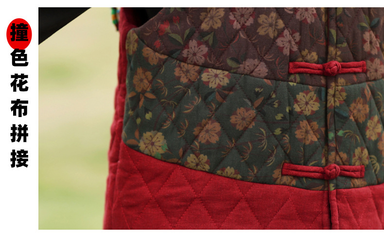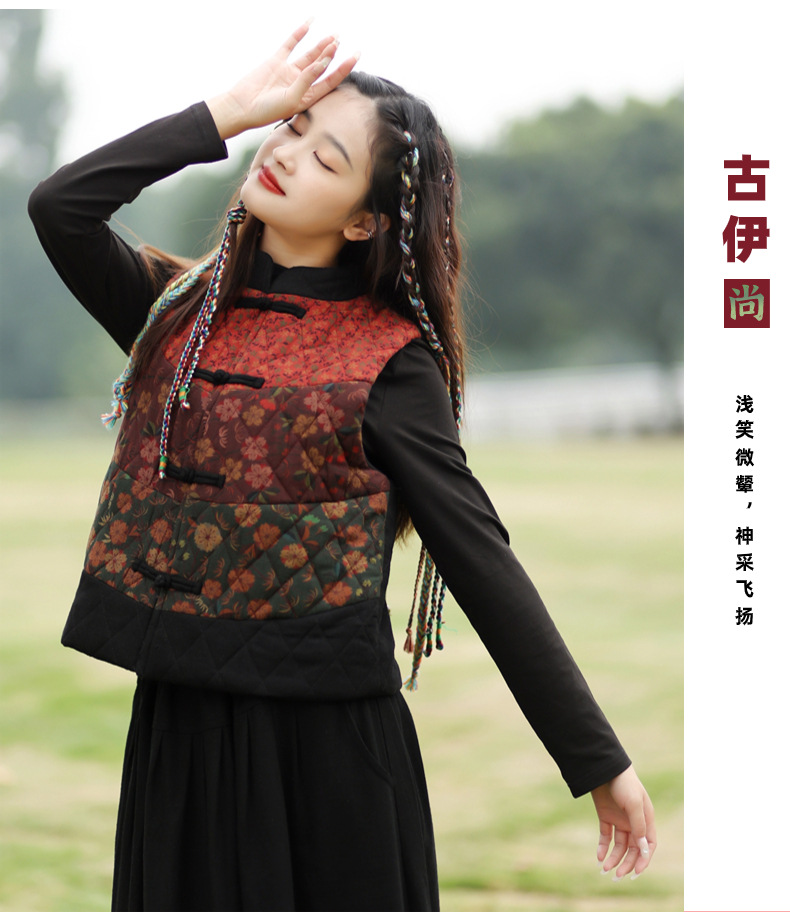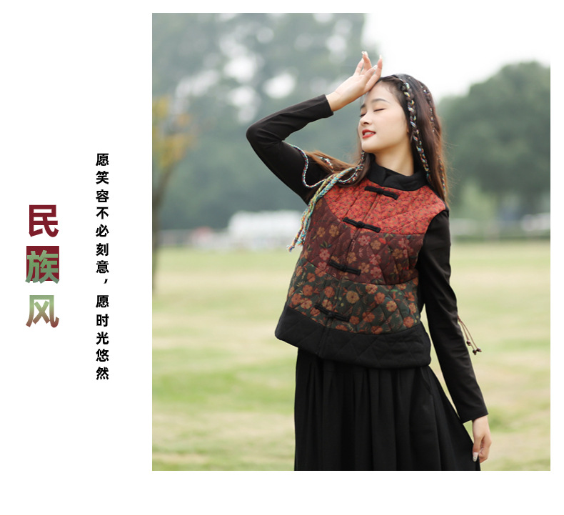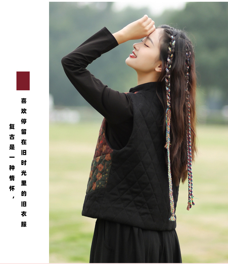 여성용 짧은 면 조끼 2025 가을 겨울 신상 중국풍 레트로 민족풍 배색 스티치 누빔 민소매 면 조끼스토어 가기