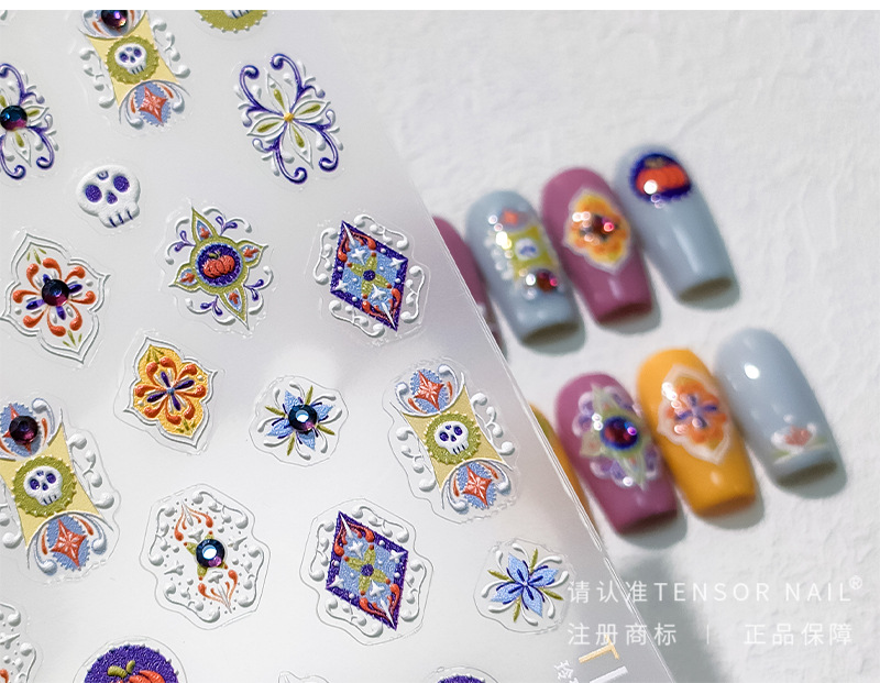 TENSOR 신기술 네일 아트 스티커 보헤미안 릴리프 접착 네일 스티커 링롱 포인트 드릴 시리즈 TL-042
