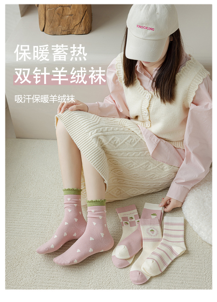 두꺼운 양모 양말 여성 가을과 겨울 새로운 따뜻한 긴 튜브 Zhuji 양말 여성의 핑크 달콤한 튜브 양말스토어 가기
