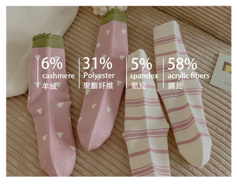 두꺼운 양모 양말 여성 가을과 겨울 새로운 따뜻한 긴 튜브 Zhuji 양말 여성의 핑크 달콤한 튜브 양말