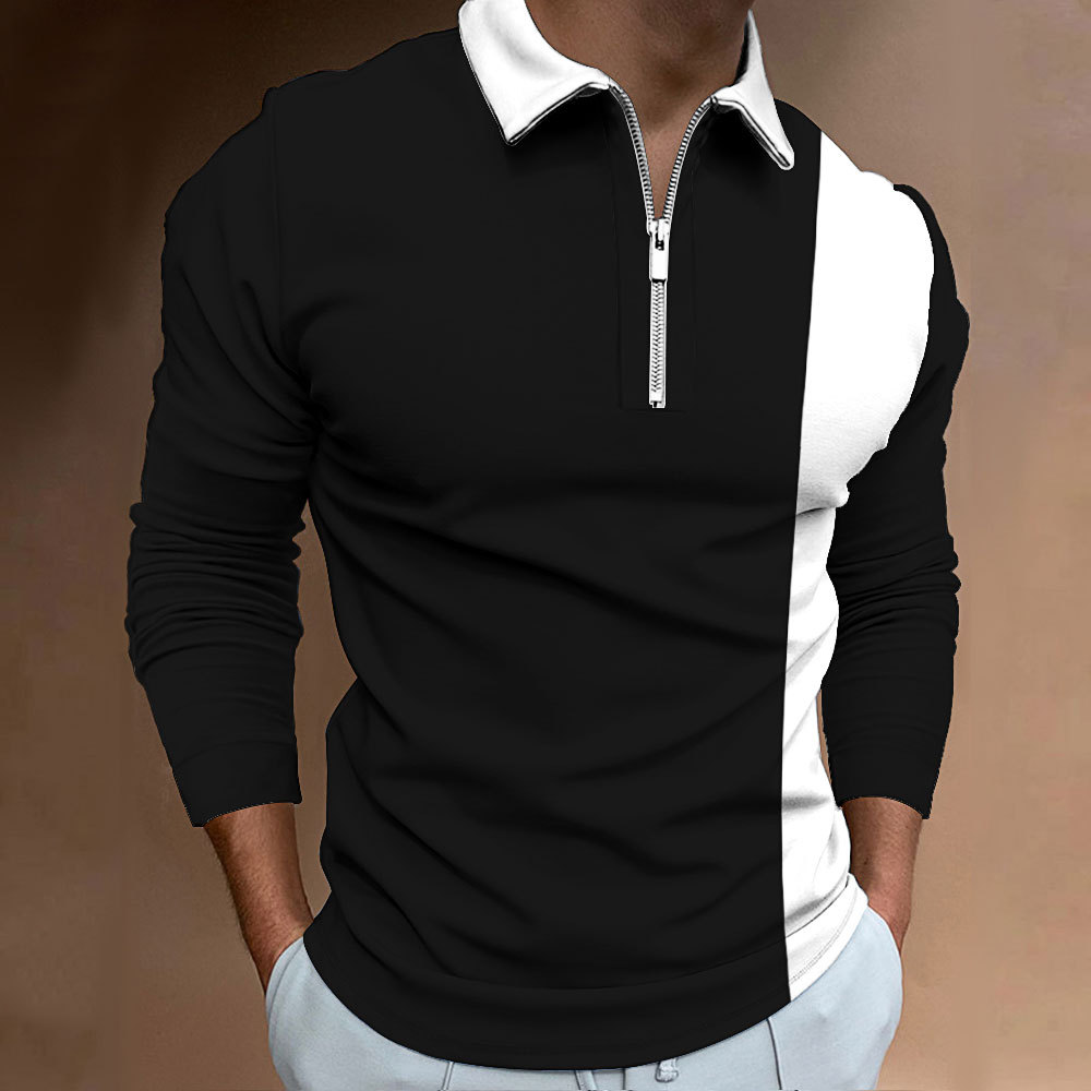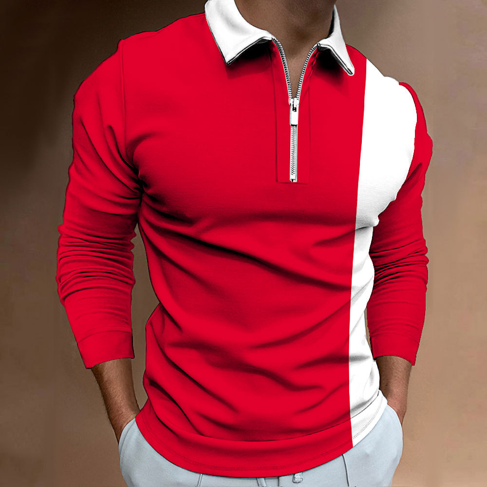 남자의 긴 소매 컬러 매칭 패션 조합 남자의 옷깃 긴 소매 남자의 폴로 셔츠 더블 컬러 매칭 패션 남성복