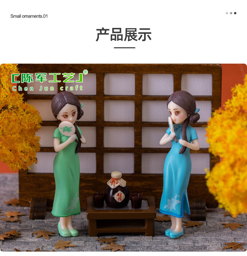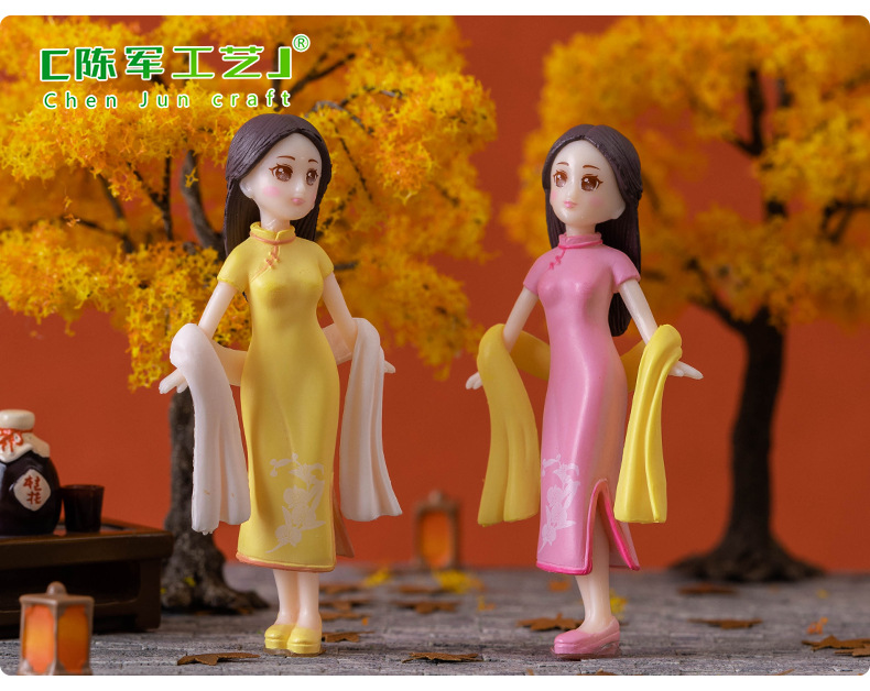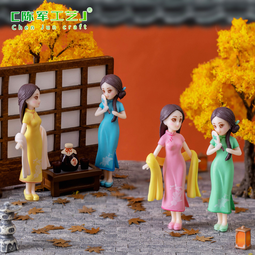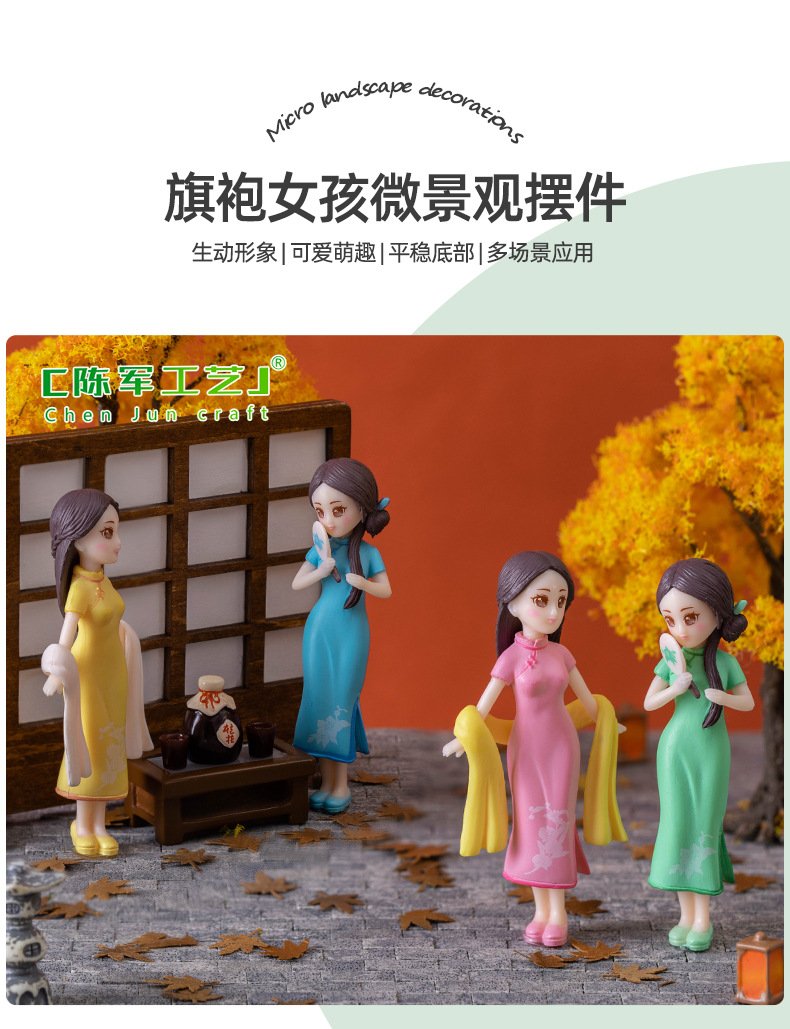 마이크로 풍경 크리에이티브 웨어 치파오 소녀 피규어 손으로 만든 블라인드 박스 액세서리 자동차 데스크탑 작은 장식품