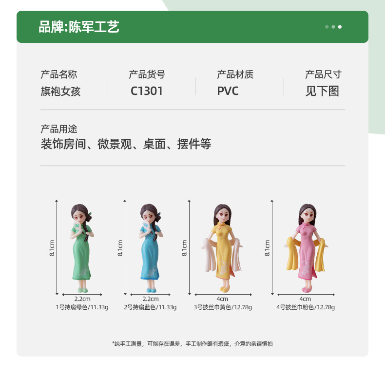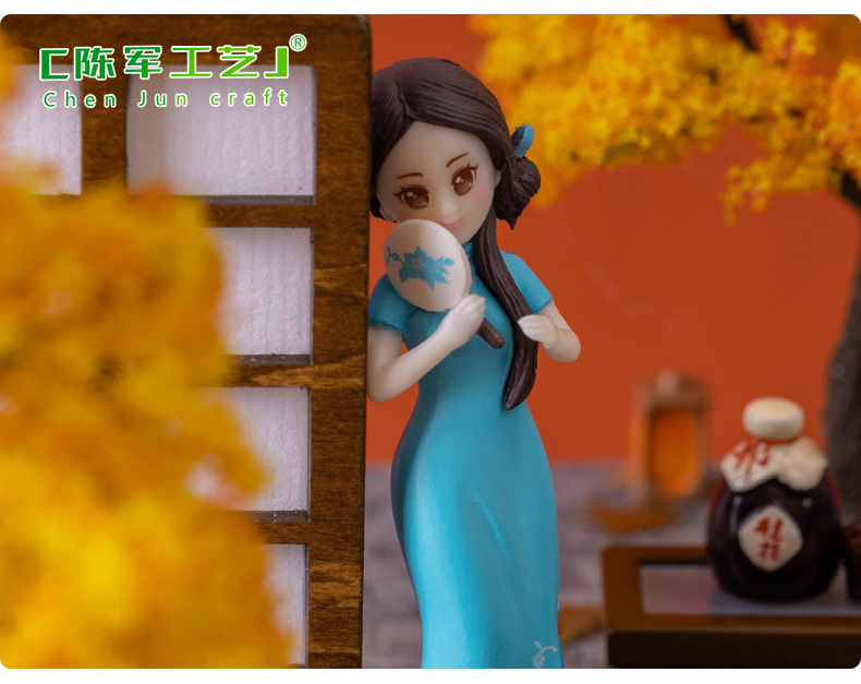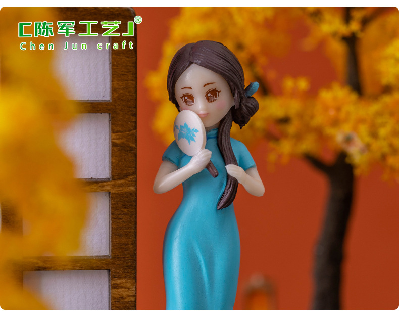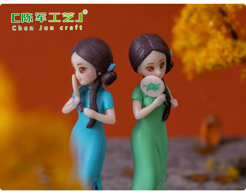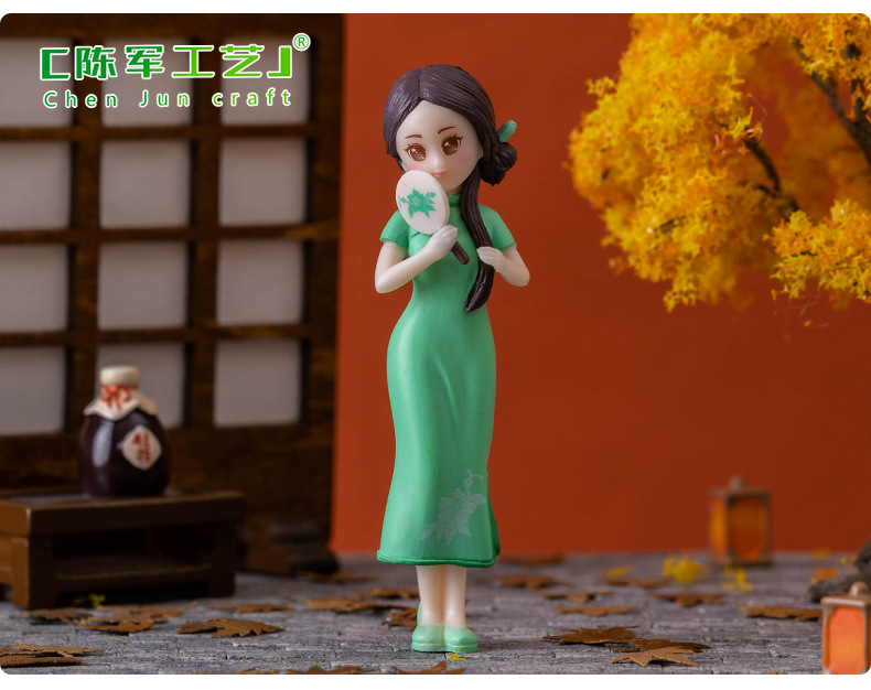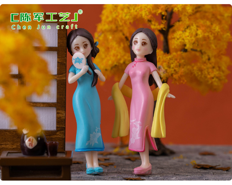 마이크로 풍경 크리에이티브 웨어 치파오 소녀 피규어 손으로 만든 블라인드 박스 액세서리 자동차 데스크탑 작은 장식품