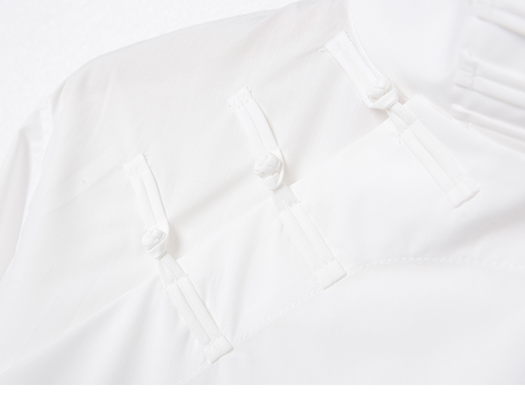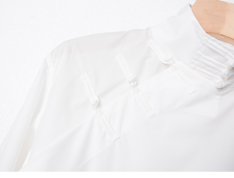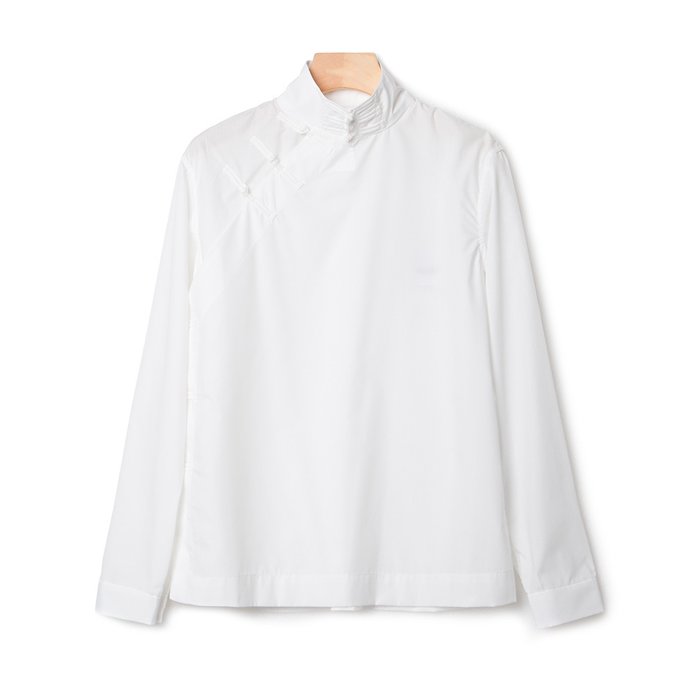 가을 겨울 신상 모델, 모던한 중국풍 스타일의 스탠드 칼라, 버튼 장식의 흰색 셔츠, 긴 소매, 패셔너블하고 다용도, 슬림핏