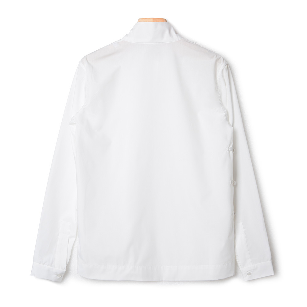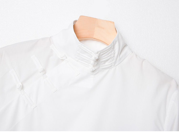 가을 겨울 신상 모델, 모던한 중국풍 스타일의 스탠드 칼라, 버튼 장식의 흰색 셔츠, 긴 소매, 패셔너블하고 다용도, 슬림핏스토어 가기