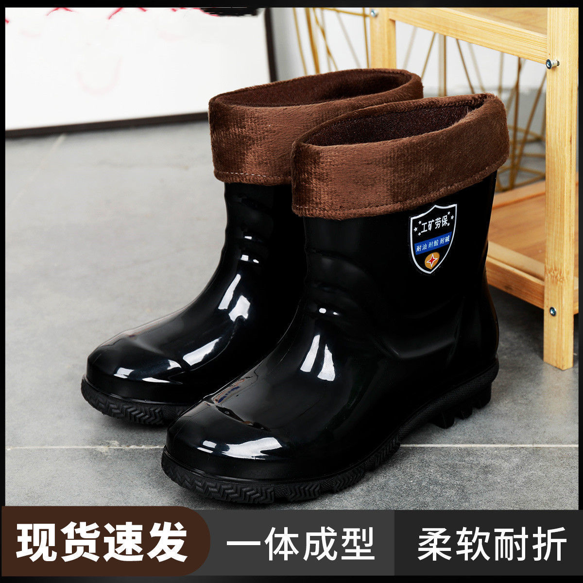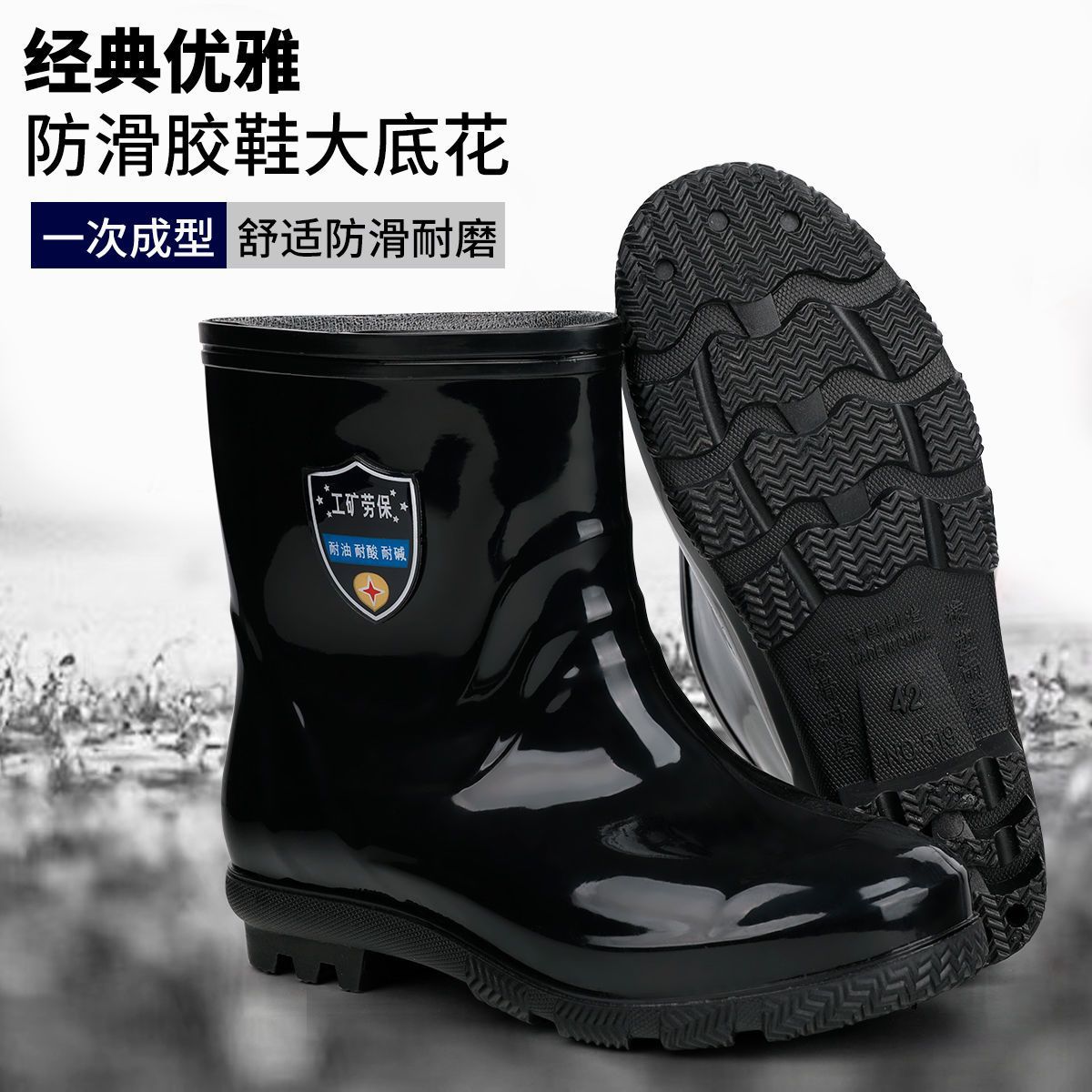 공장 직접 도매 레인 슈즈 남성 건설 현장 튜브 미끄럼 방지 물 신발 짧은 튜브 내마모성 고무 신발 노동 물 신발 남성스토어 가기