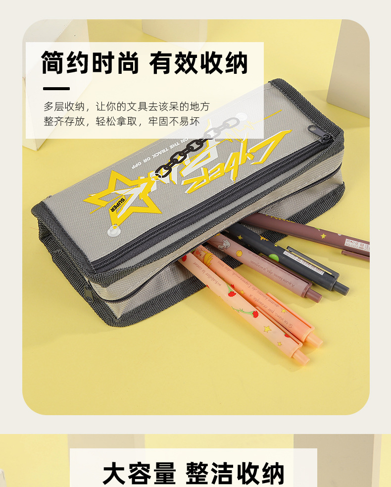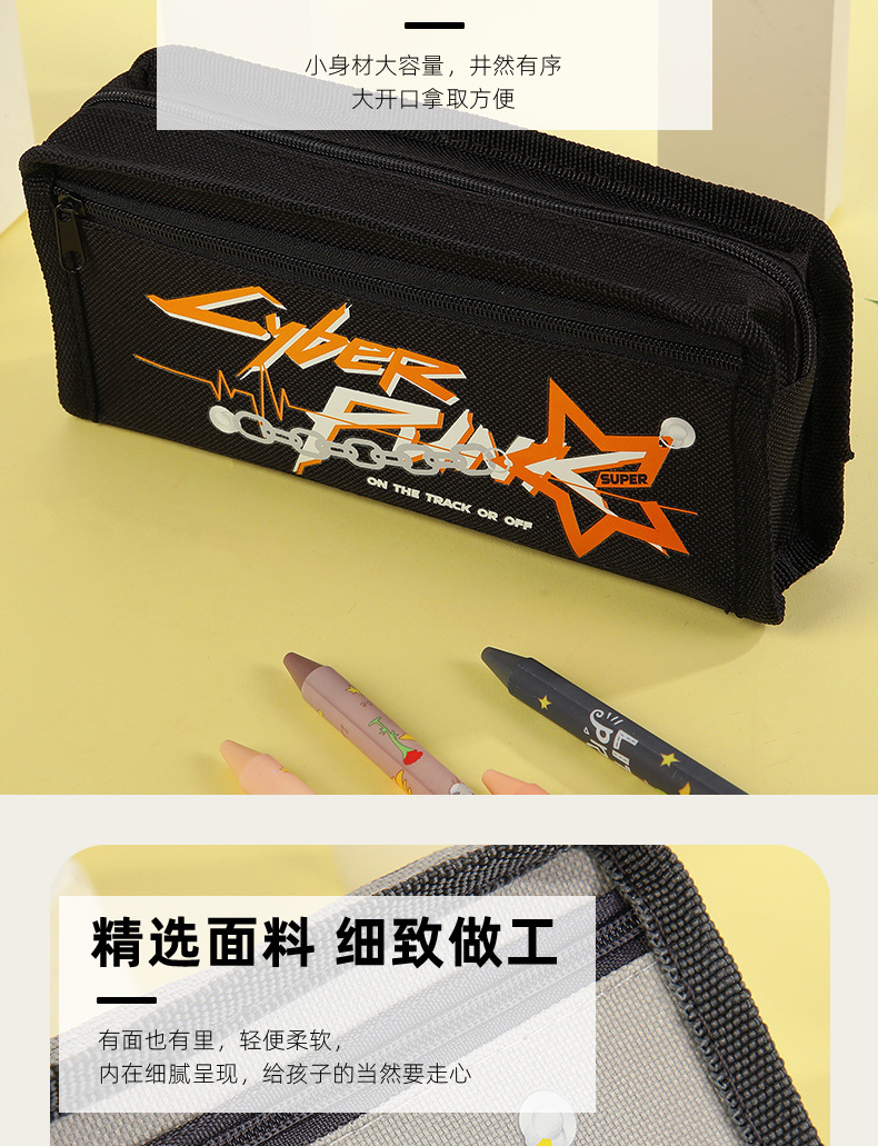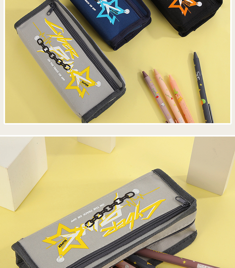 소년을위한 대용량 연필 가방 멋진 다섯개 별 더블 지퍼 편지지 가방 국경 틈새 만화 편지지 연필 상자