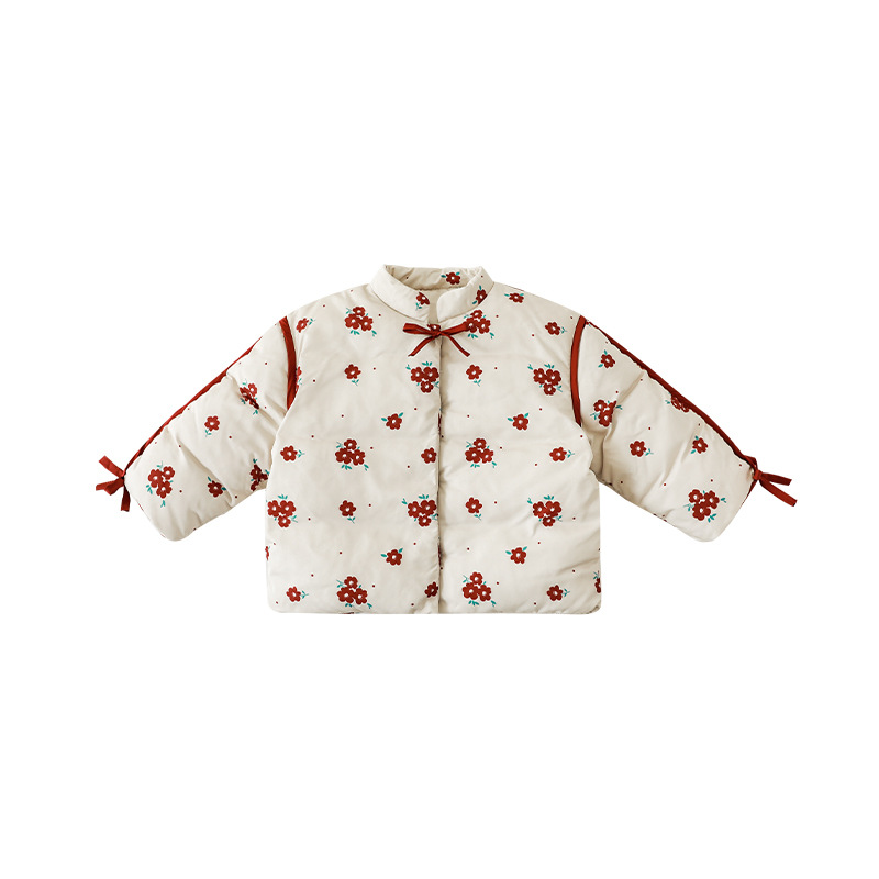 Qiu Duomeng 소녀 귀여운 꽃 세트 2025 겨울 새 스커트 어린이 중국 스타일 따뜻한 면화 패딩 재킷 바지스토어 가기
