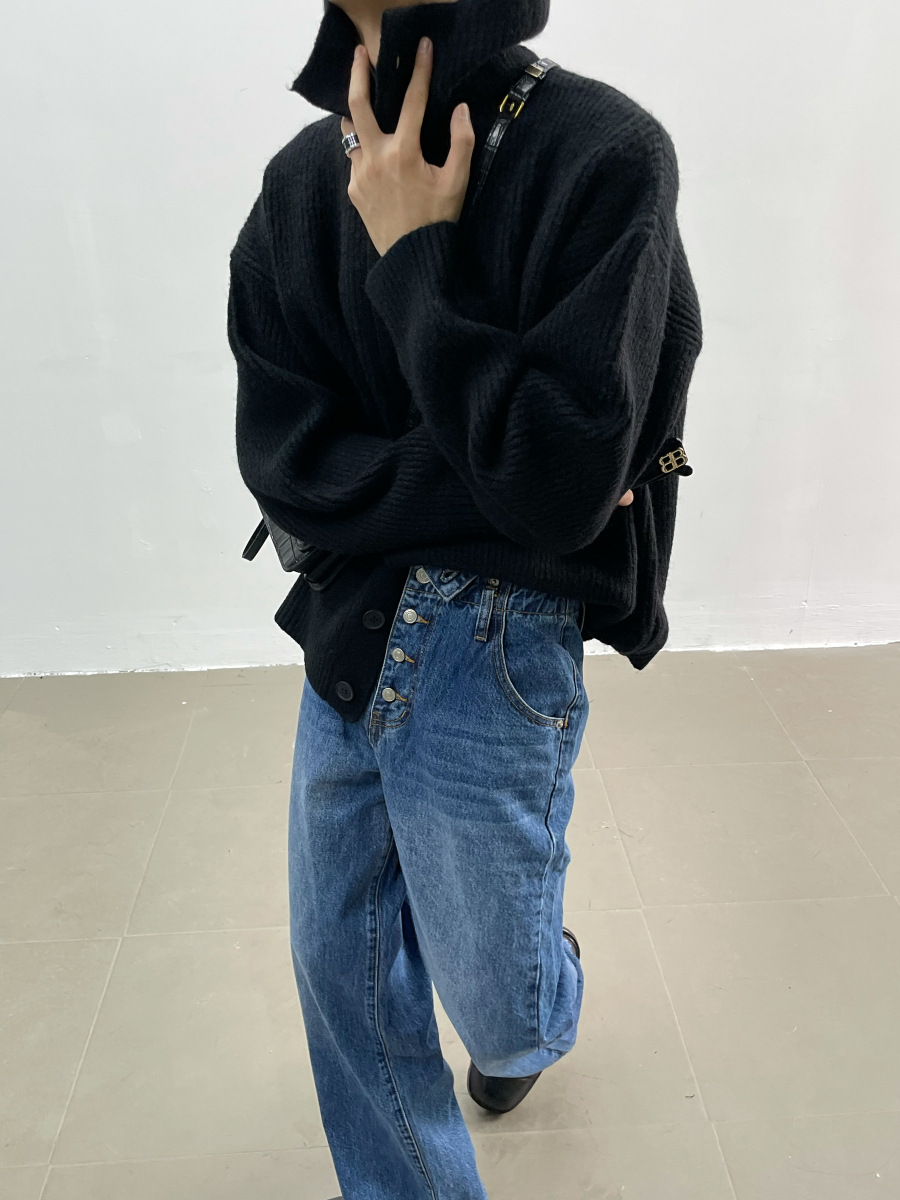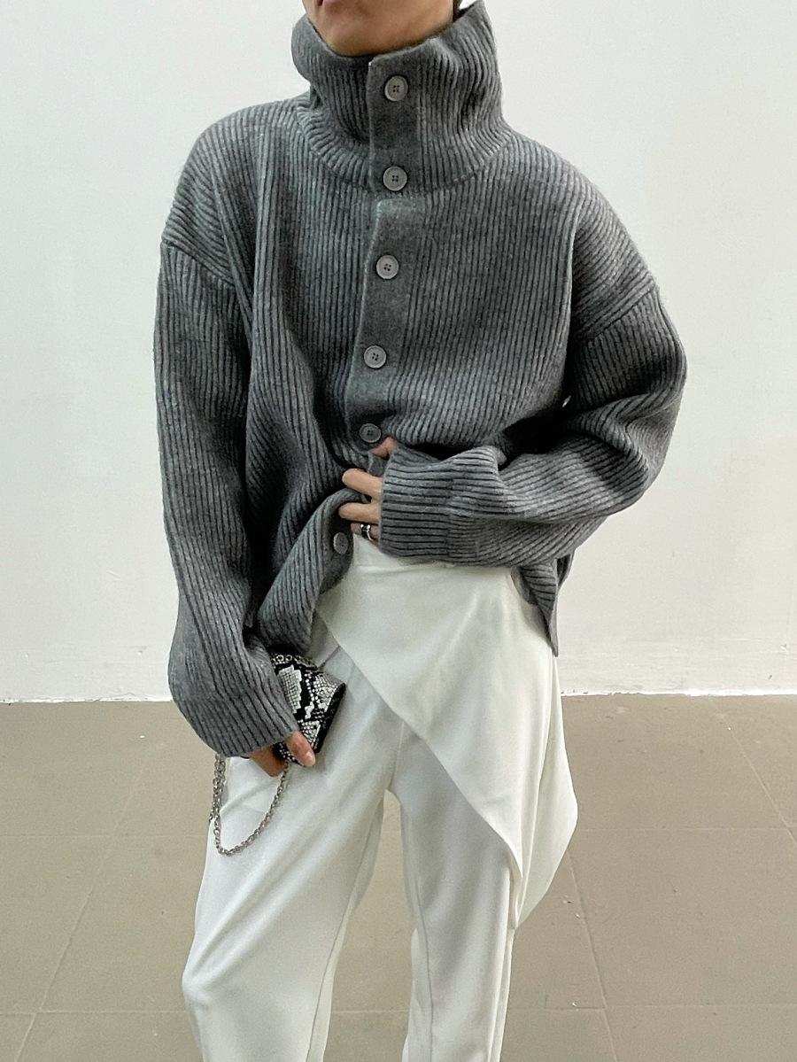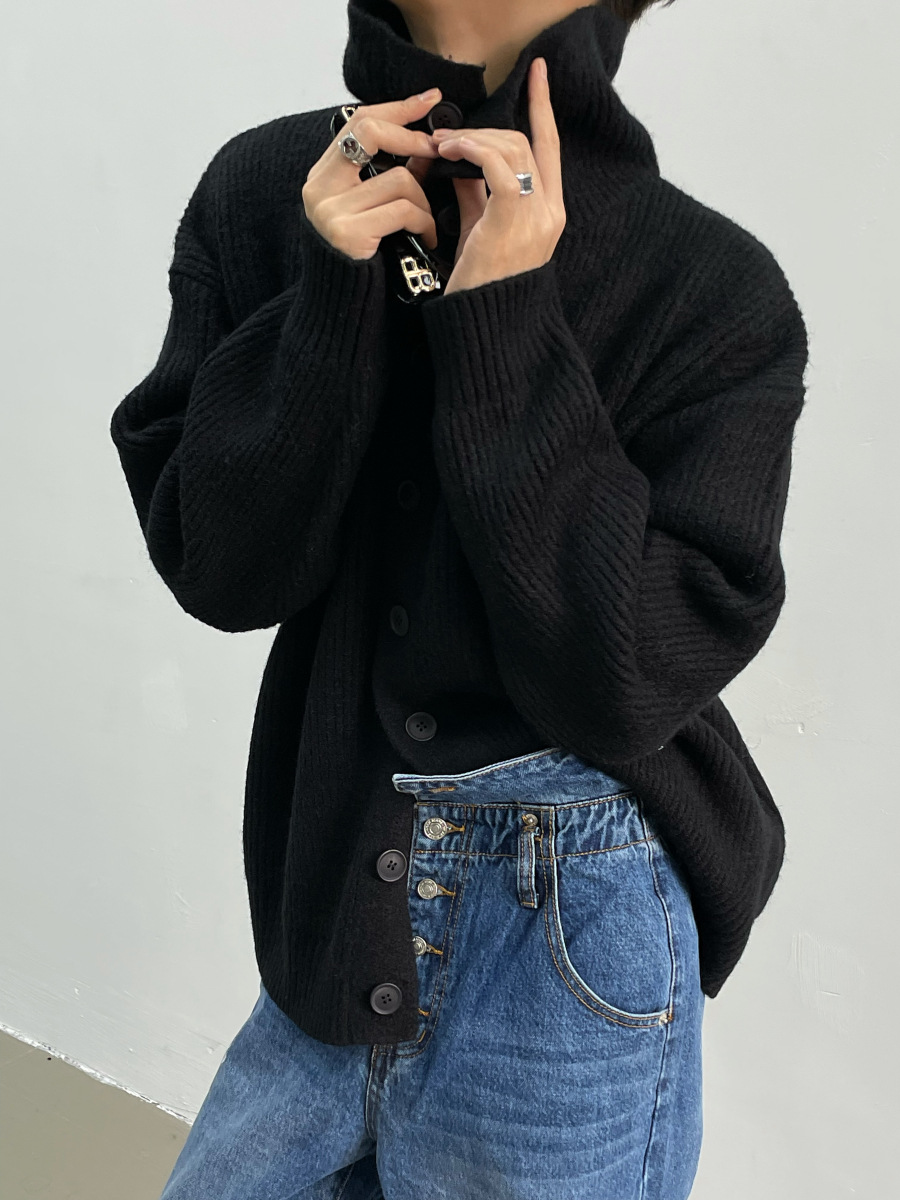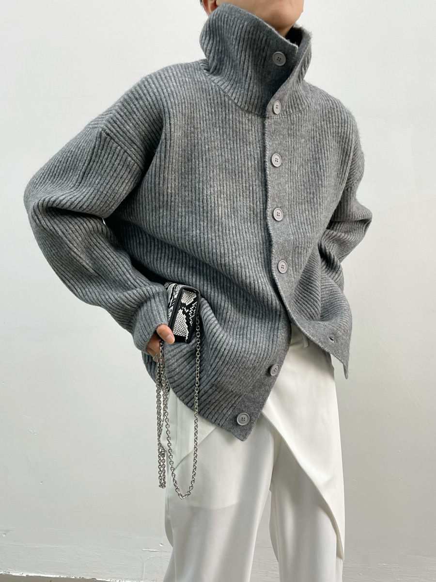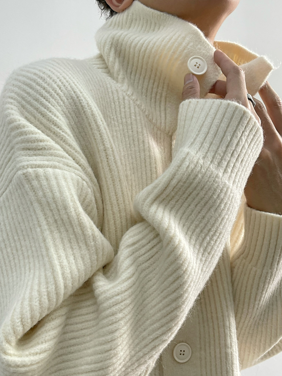 겨울 틈새 디자인 버튼 장식 두꺼운 터틀넥 스웨터 남성용 느슨한 우아한베이스 울 니트 가디건 유행스토어 가기
