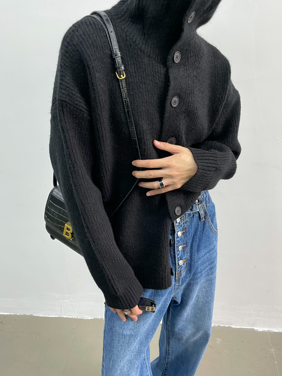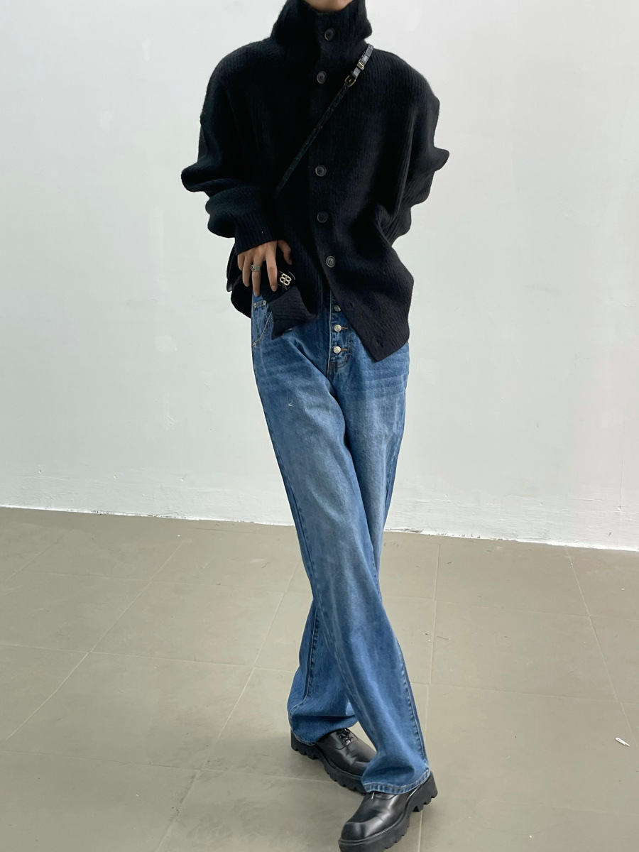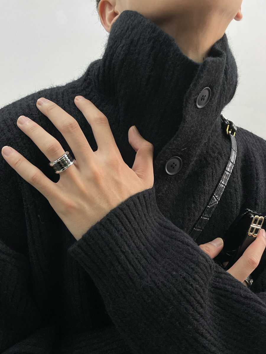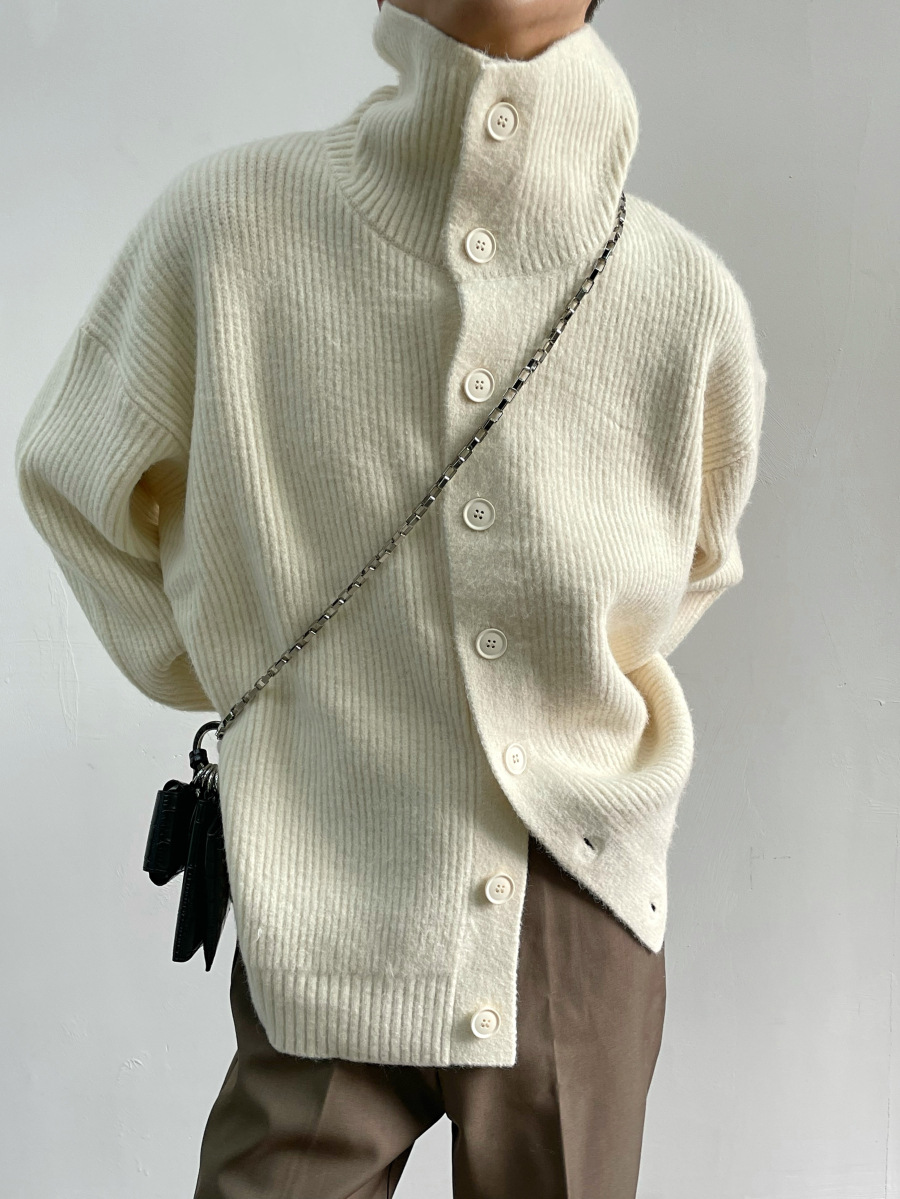 겨울 틈새 디자인 버튼 장식 두꺼운 터틀넥 스웨터 남성용 느슨한 우아한베이스 울 니트 가디건 유행스토어 가기