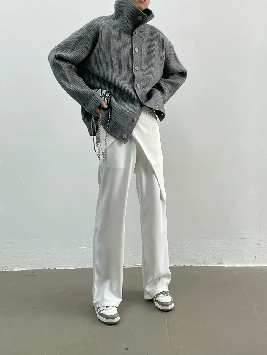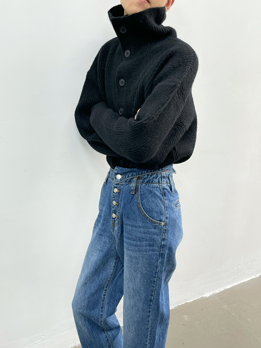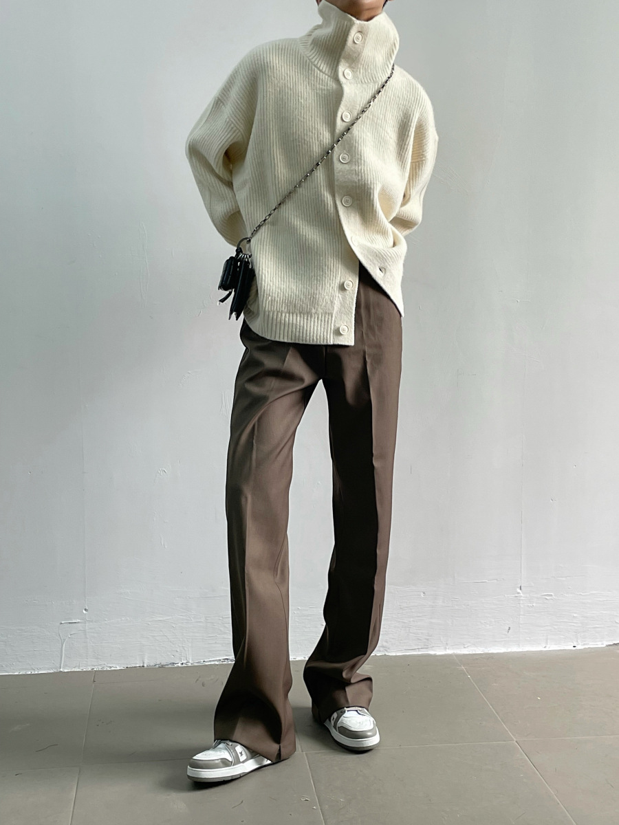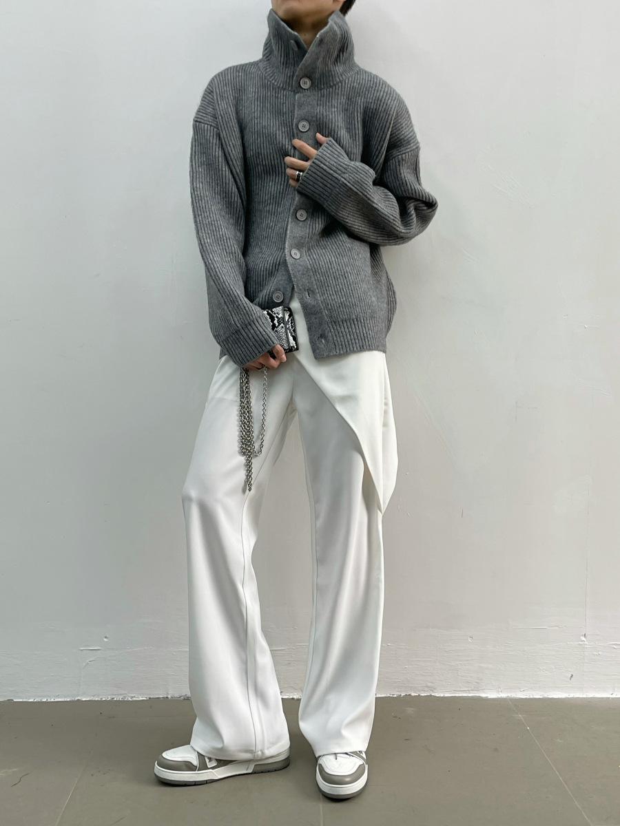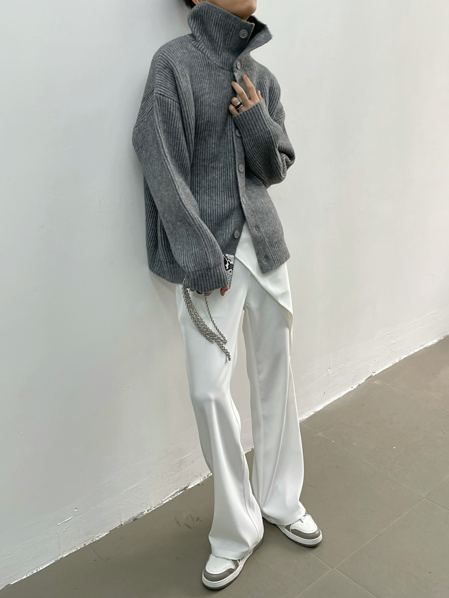 겨울 틈새 디자인 버튼 장식 두꺼운 터틀넥 스웨터 남성용 느슨한 우아한베이스 울 니트 가디건 유행스토어 가기
