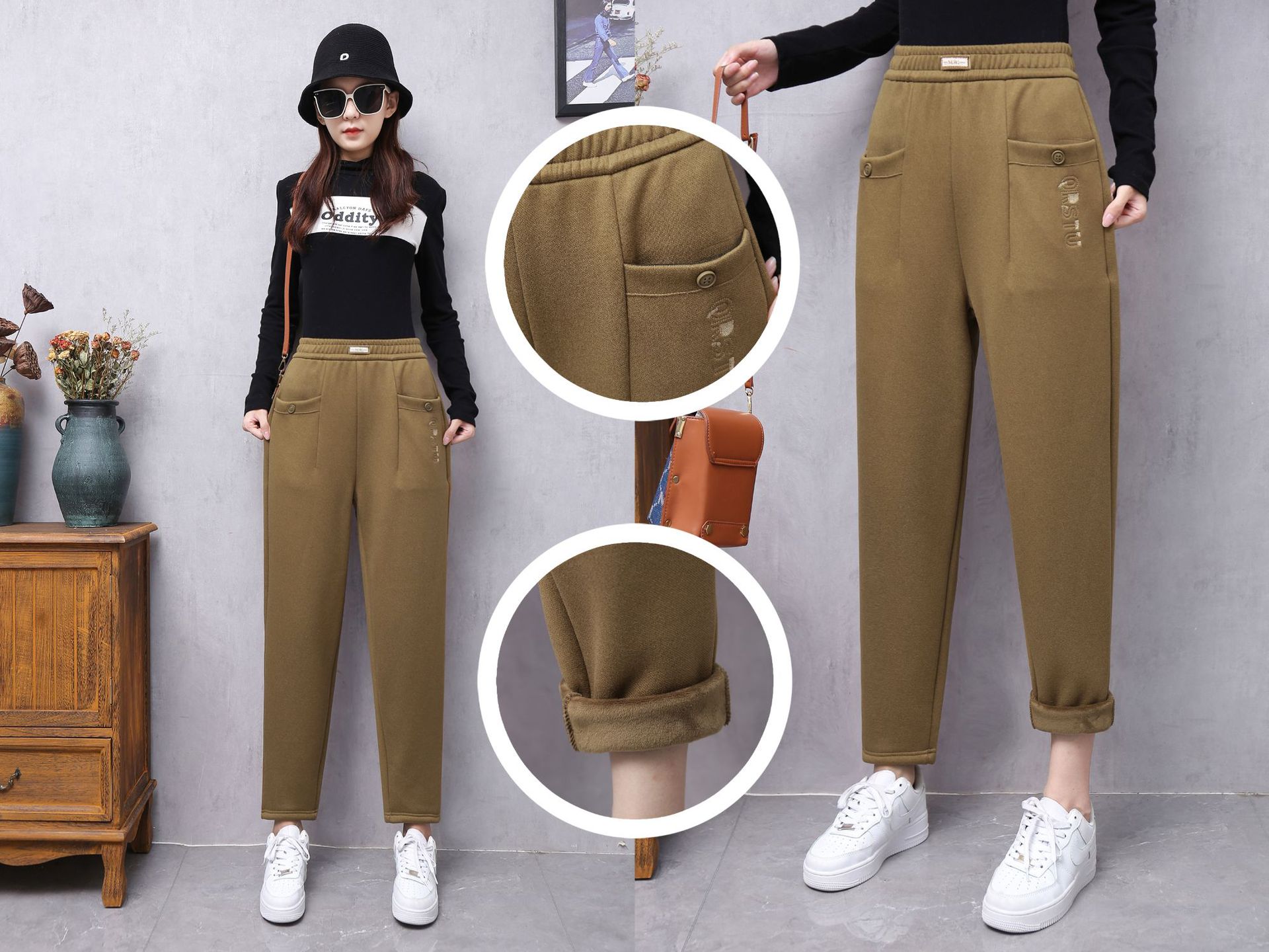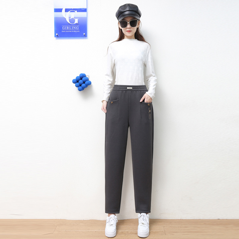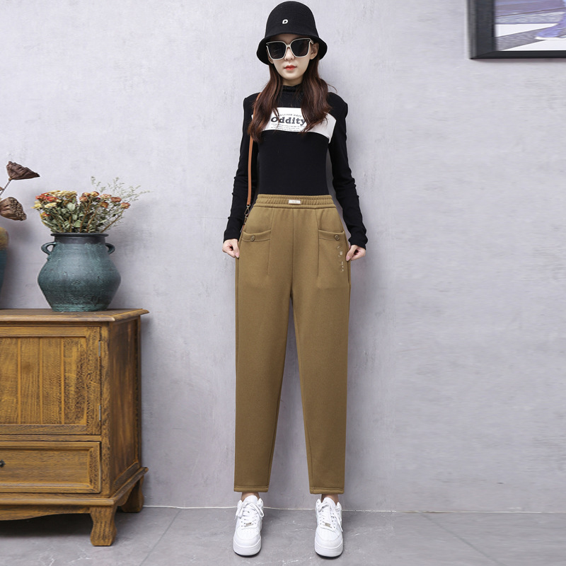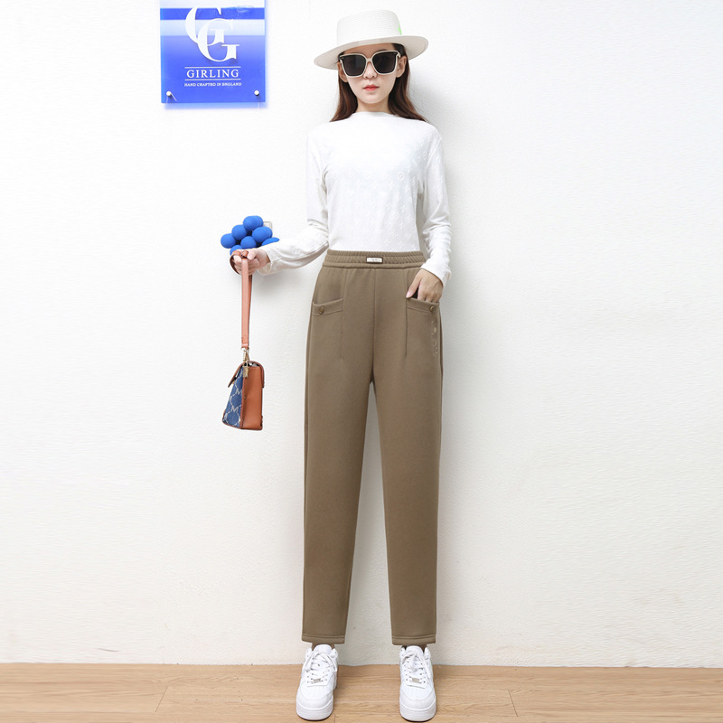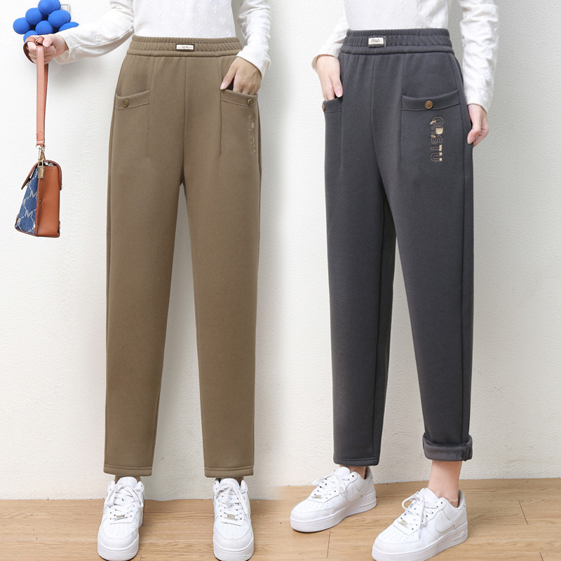 겨울 기모 능 방풍 바지 여자의 높은 허리 모직 여자의 바지 두꺼운 바지 느슨한 아빠 바지 따뜻한 러쉬 바지스토어 가기
