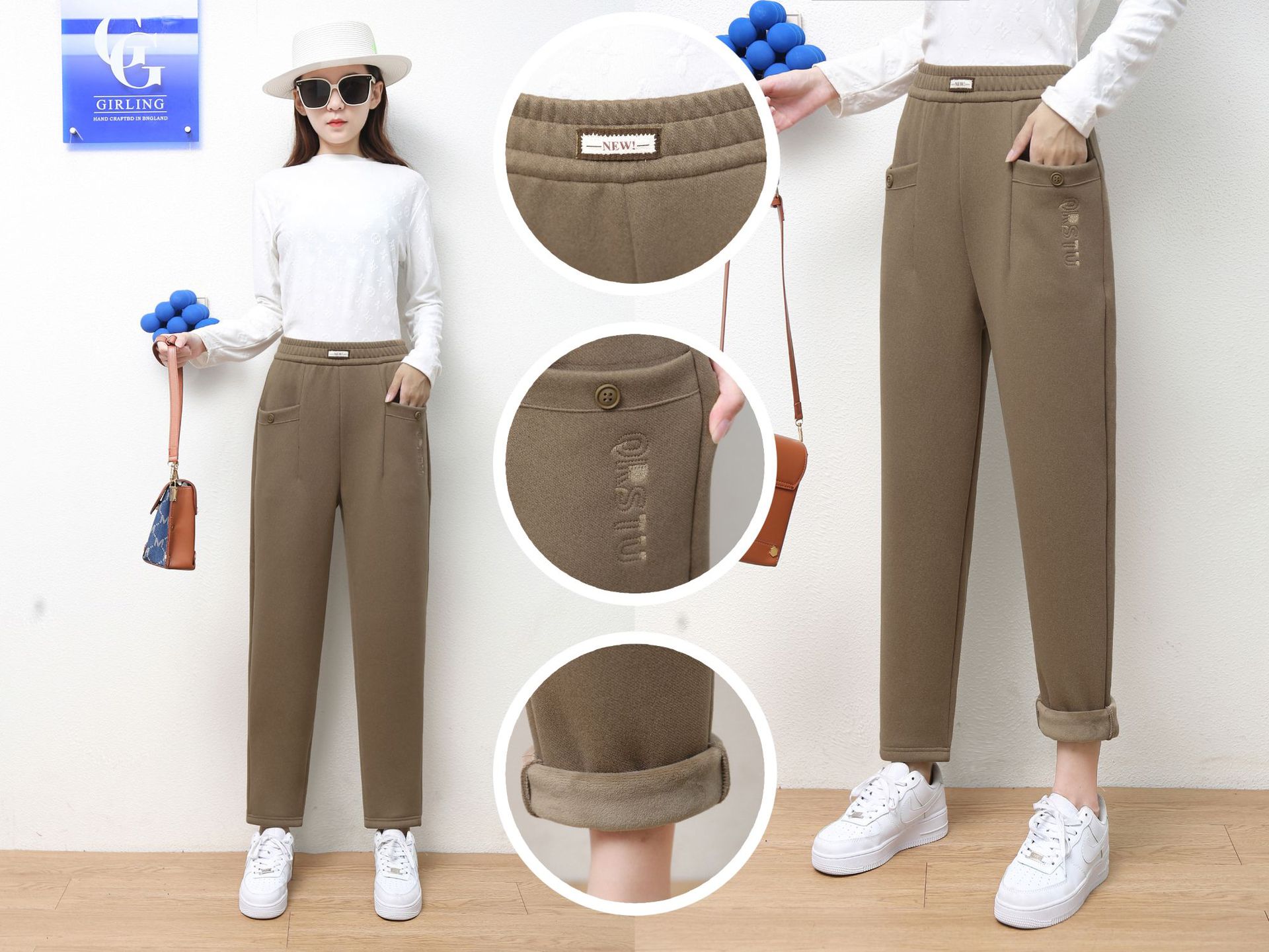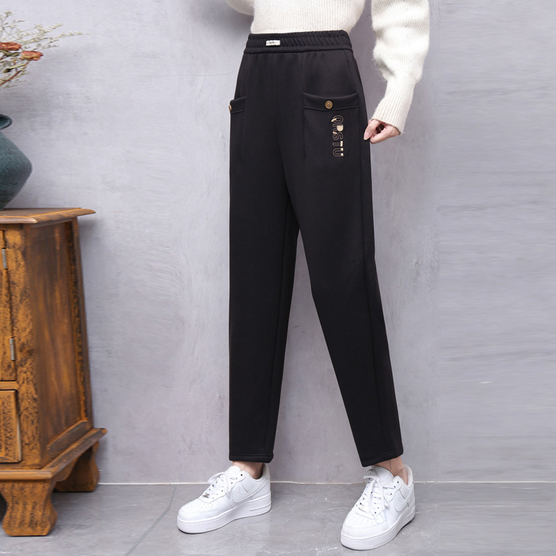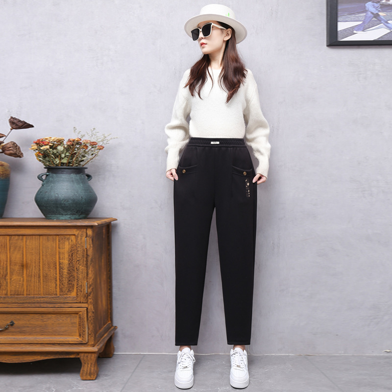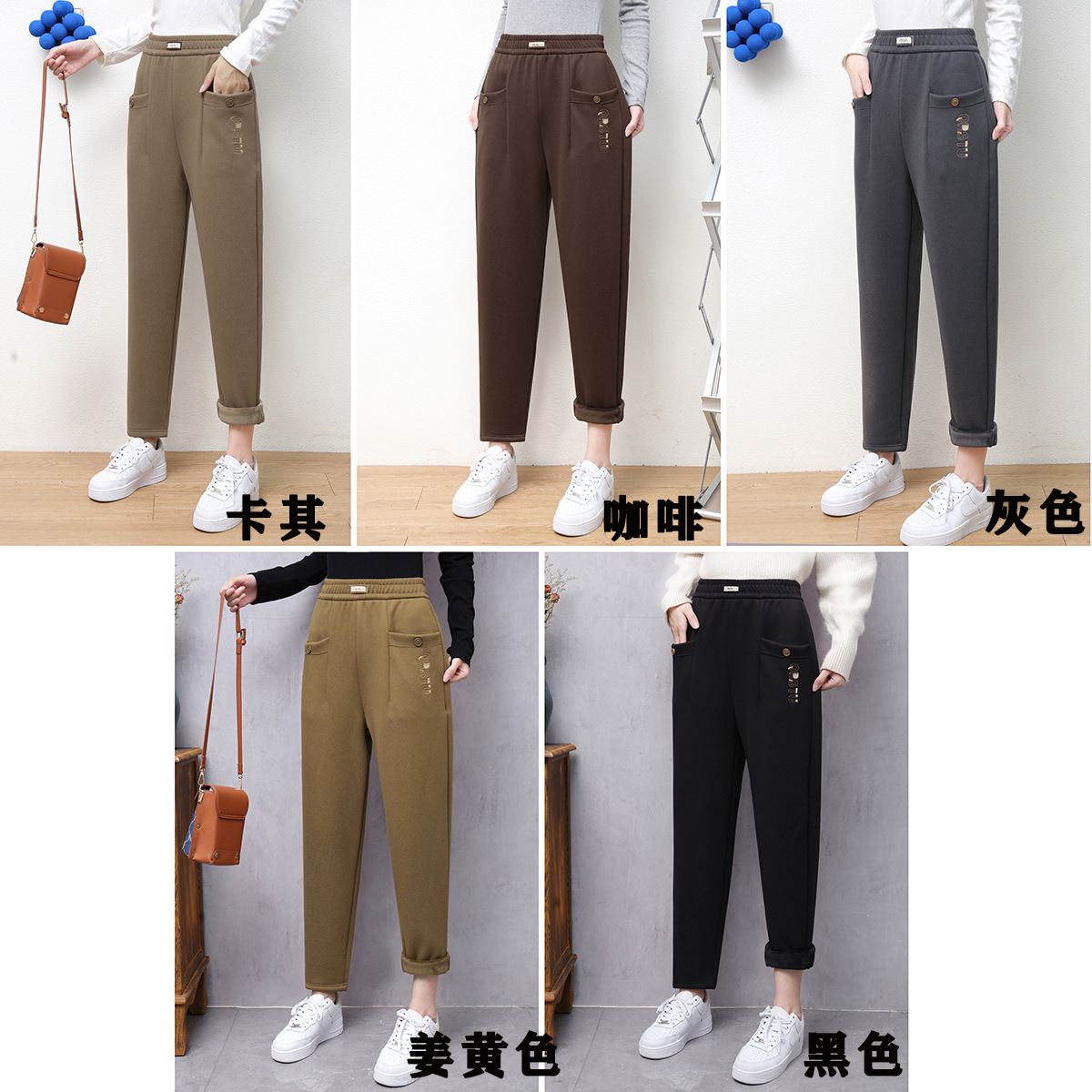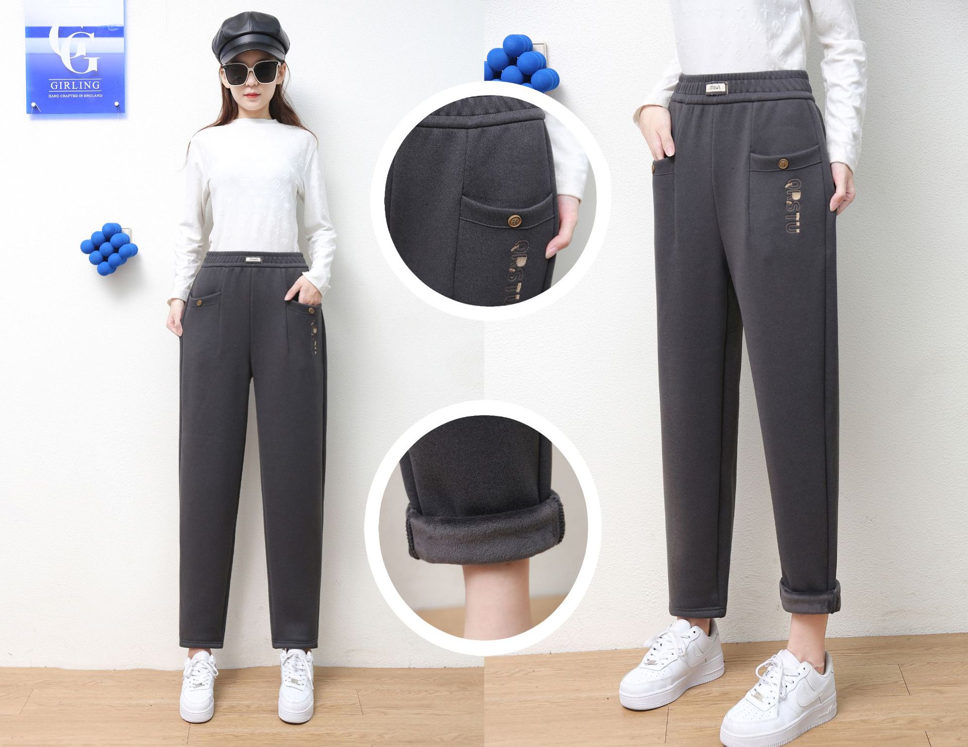 겨울 기모 능 방풍 바지 여자의 높은 허리 모직 여자의 바지 두꺼운 바지 느슨한 아빠 바지 따뜻한 러쉬 바지스토어 가기