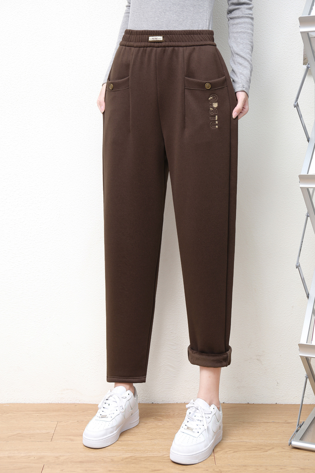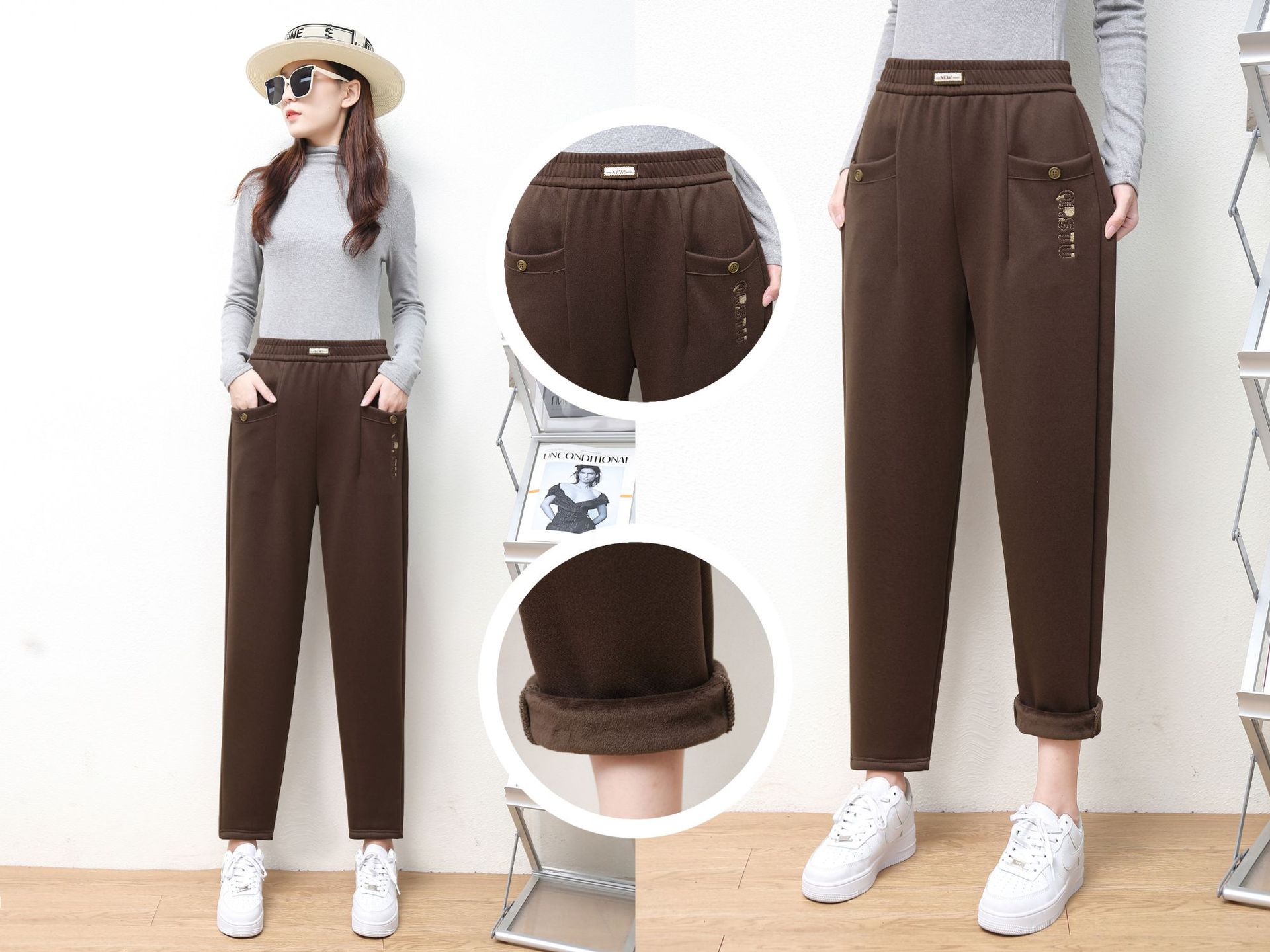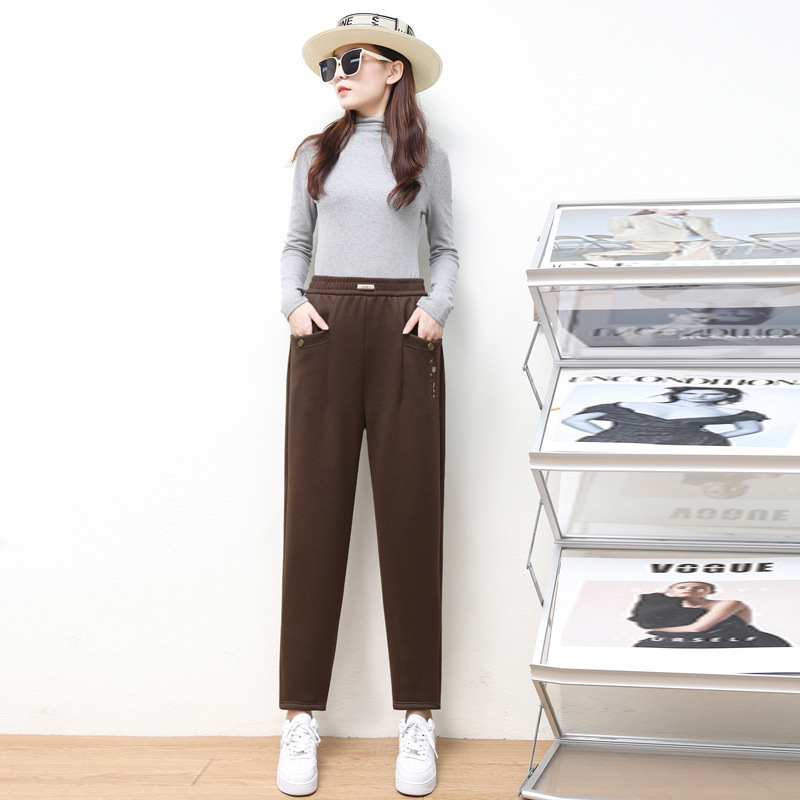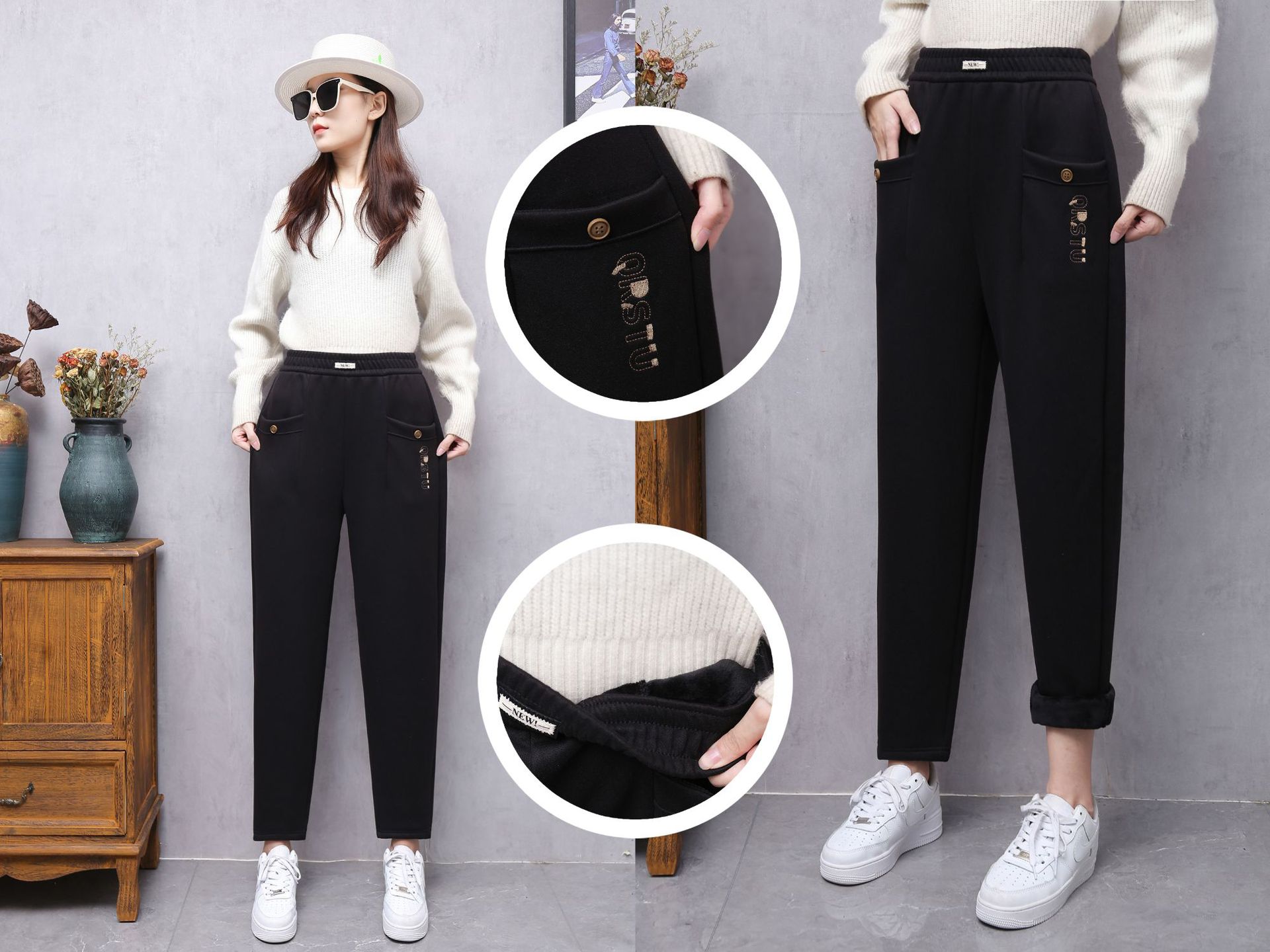 겨울 기모 능 방풍 바지 여자의 높은 허리 모직 여자의 바지 두꺼운 바지 느슨한 아빠 바지 따뜻한 러쉬 바지스토어 가기