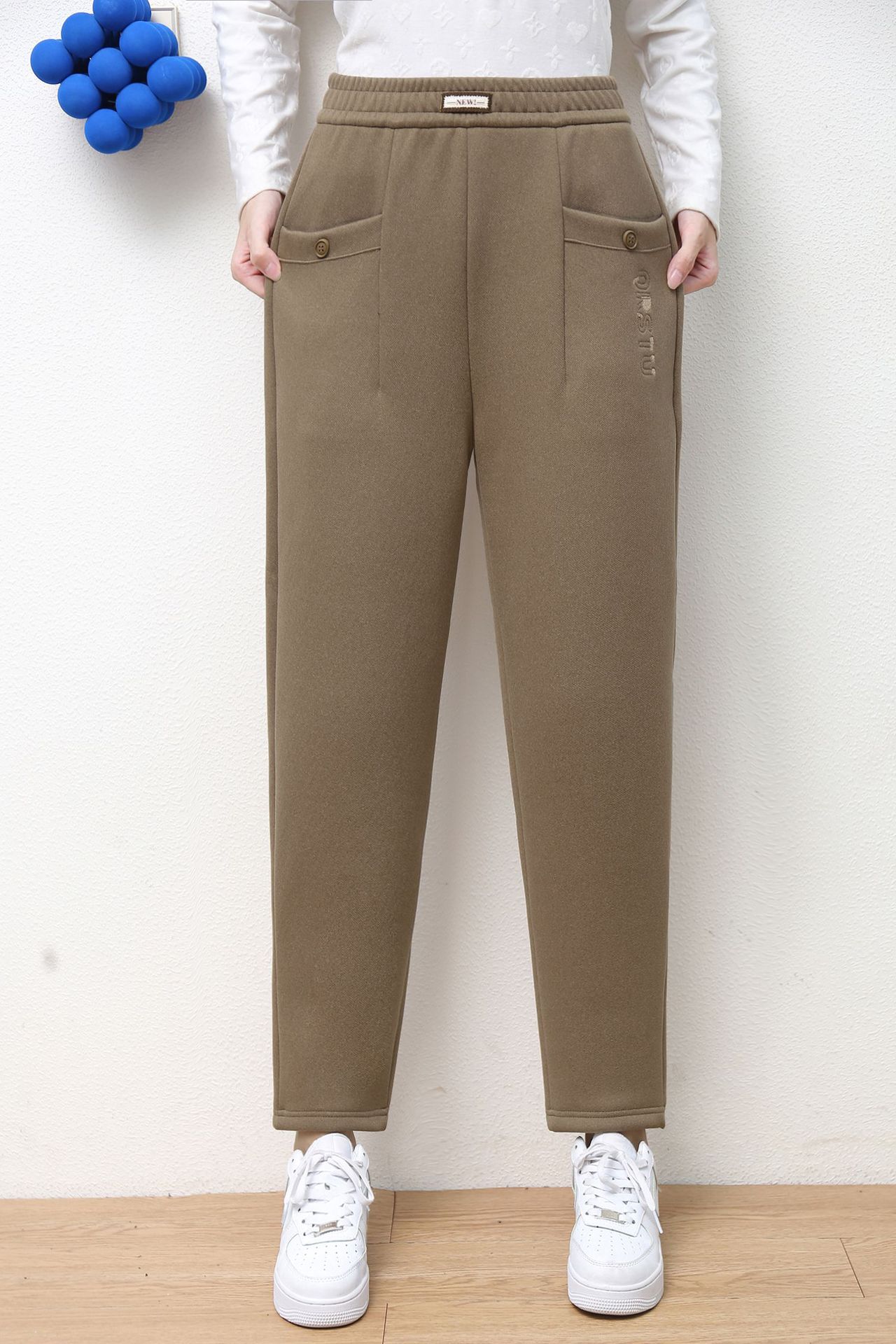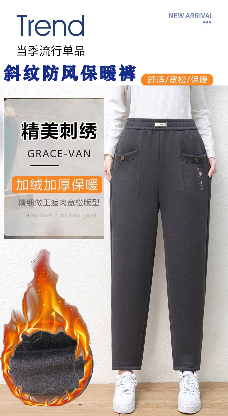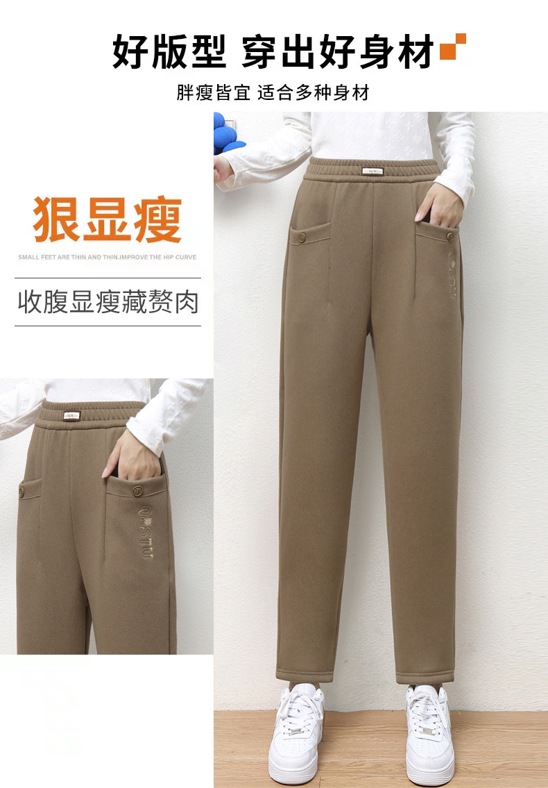 겨울 기모 능 방풍 바지 여자의 높은 허리 모직 여자의 바지 두꺼운 바지 느슨한 아빠 바지 따뜻한 러쉬 바지