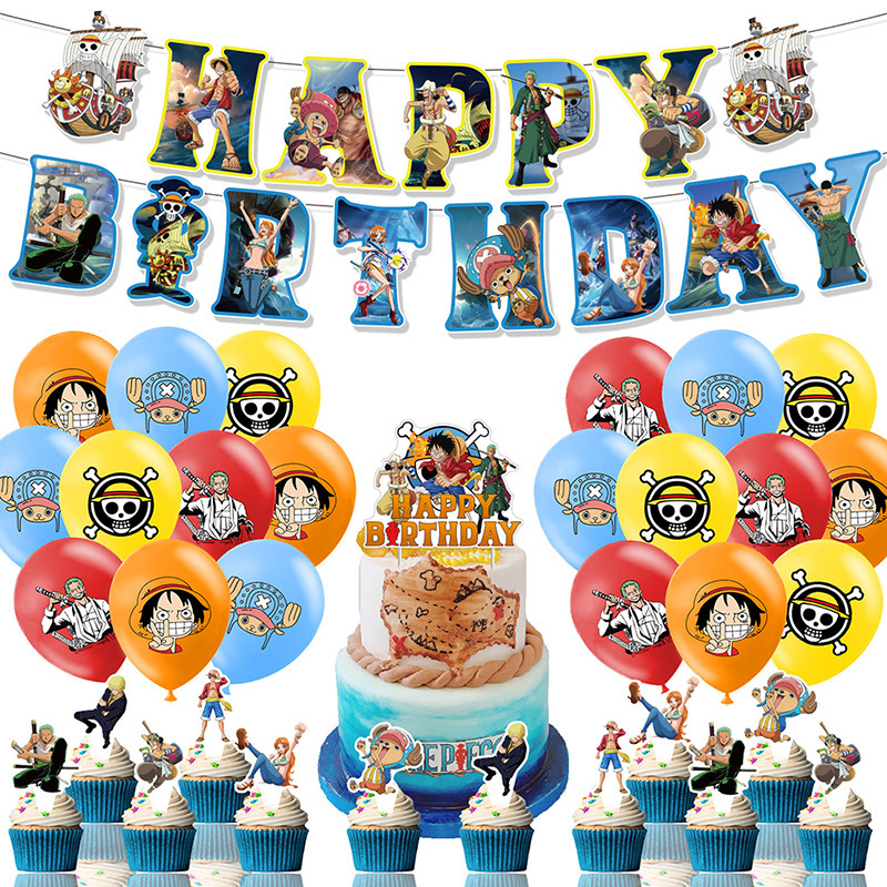 원피스 파티 장식 t 애니메이션 생일 풀 플래그 케이크 삽입 풍선 원피스 파티 용품스토어 가기