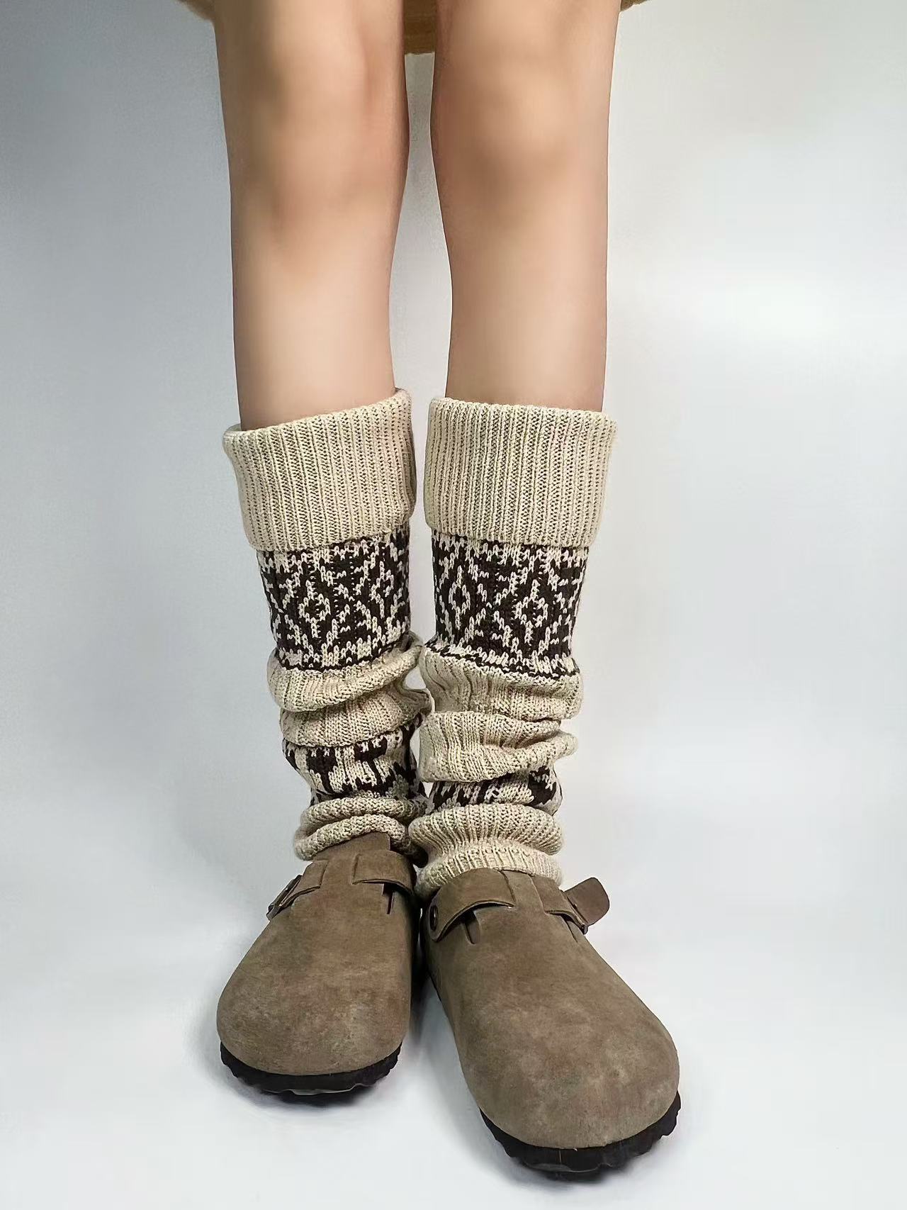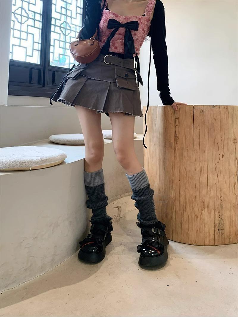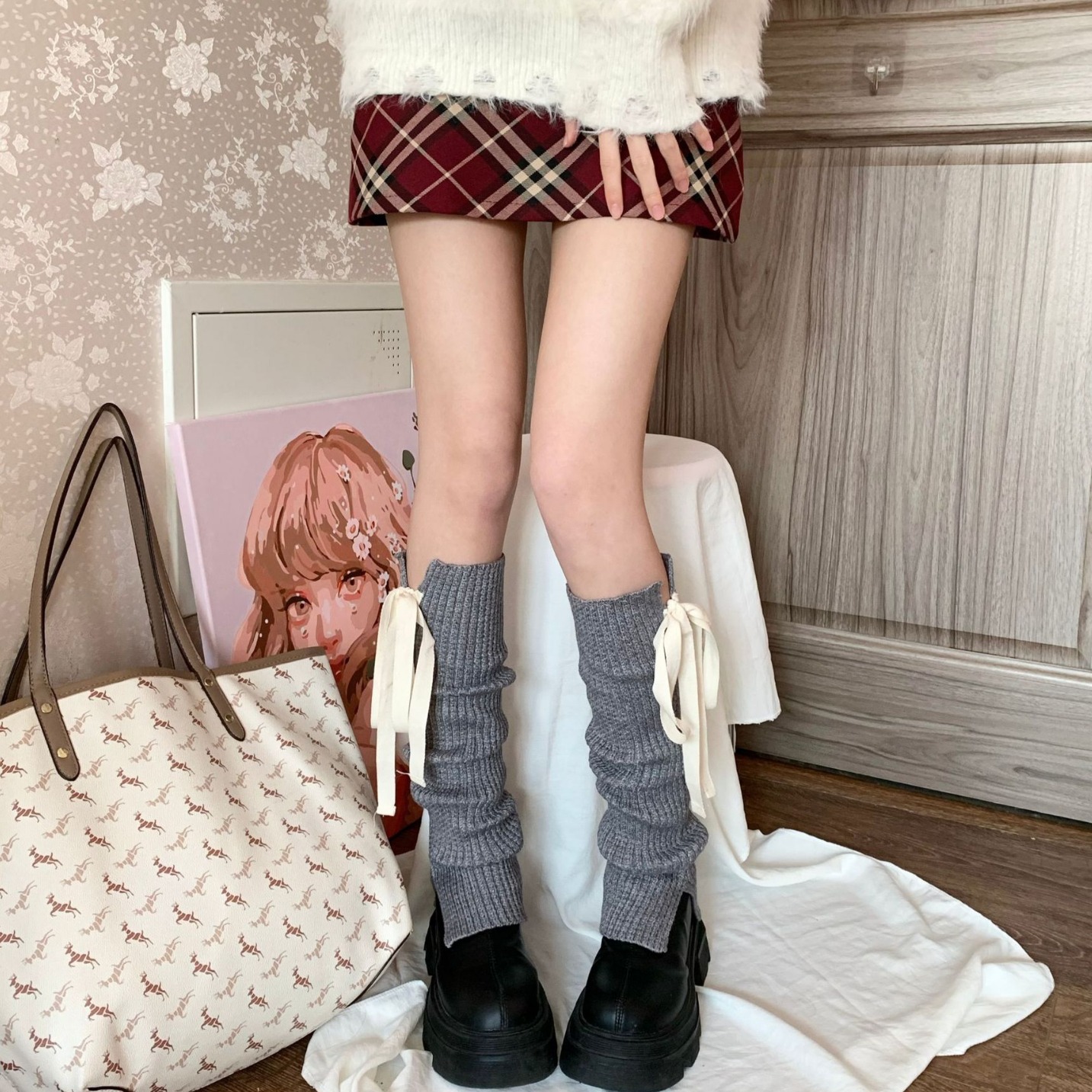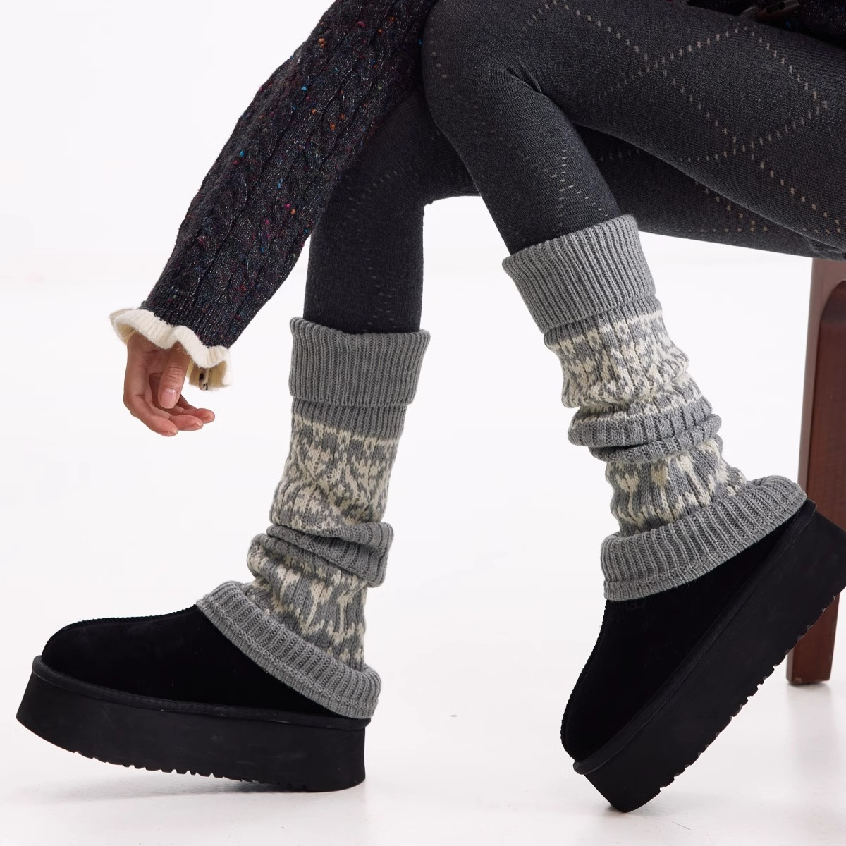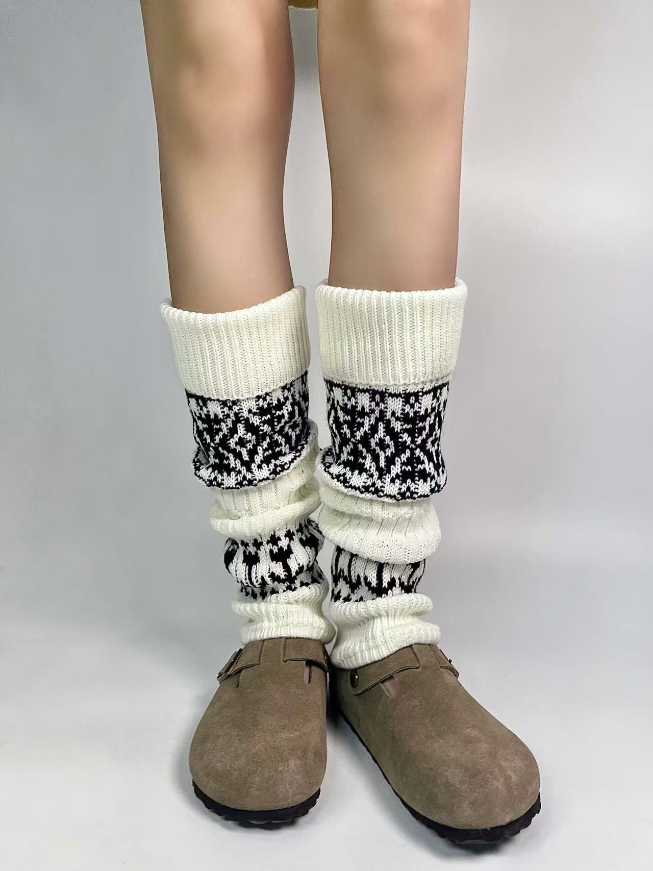 니트 스태킹 양말 여성의 가을과 겨울 일본식 JK 그레이 블랙 스티칭 버튼 양말 따뜻한 중간 길이 양말 대비 색상 분할 다리 커버