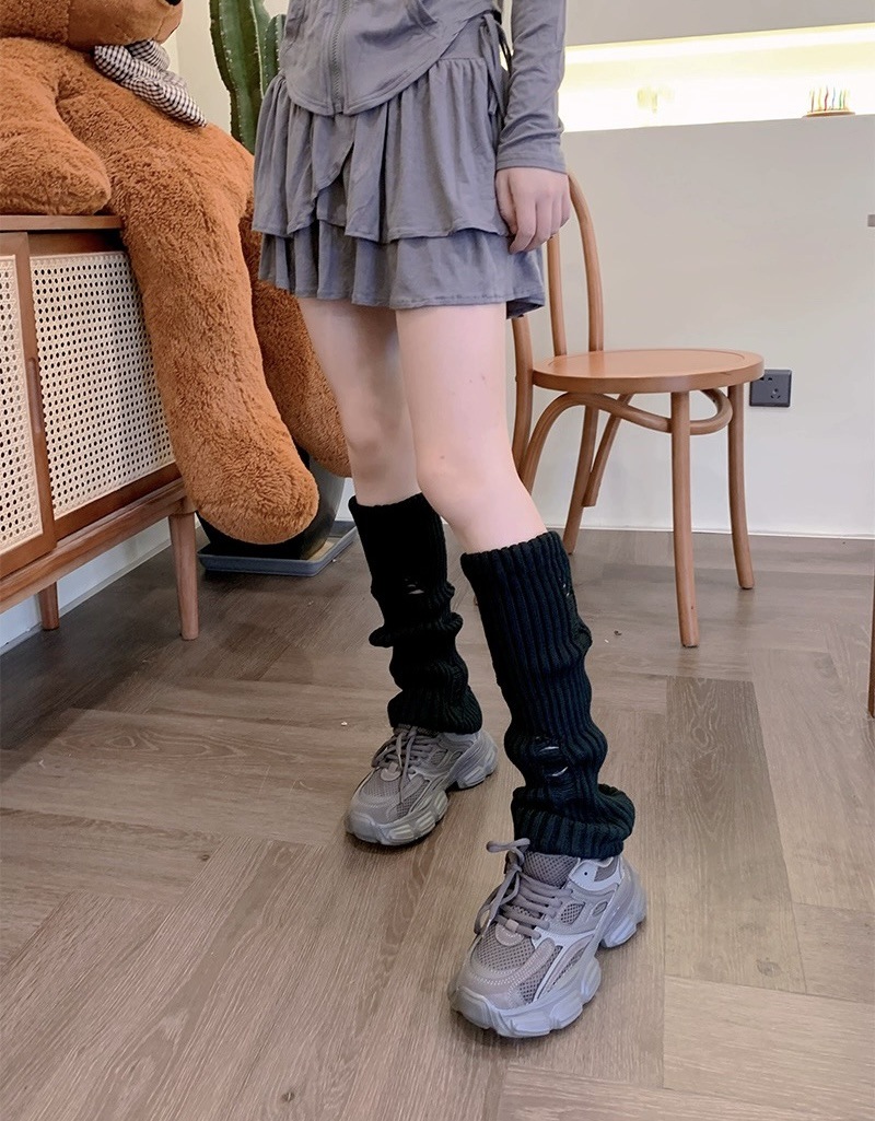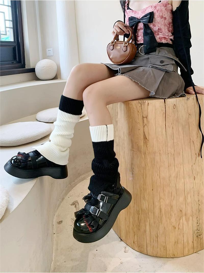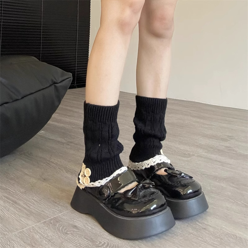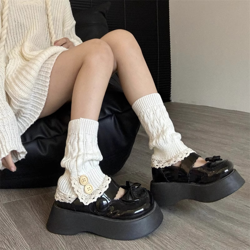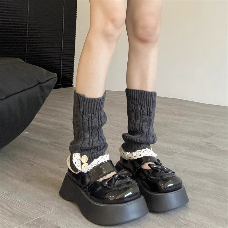 니트 스태킹 양말 여성의 가을과 겨울 일본식 JK 그레이 블랙 스티칭 버튼 양말 따뜻한 중간 길이 양말 대비 색상 분할 다리 커버스토어 가기