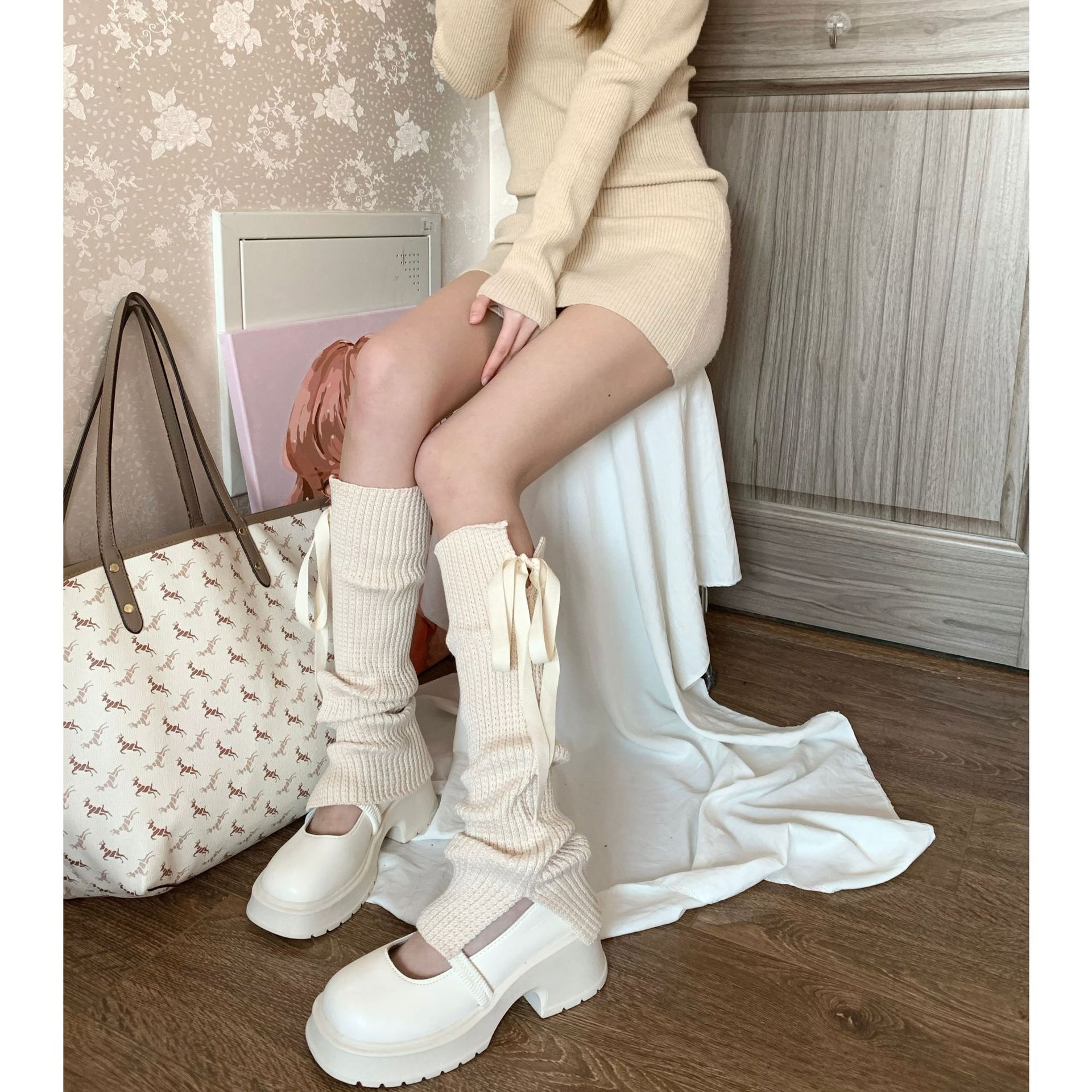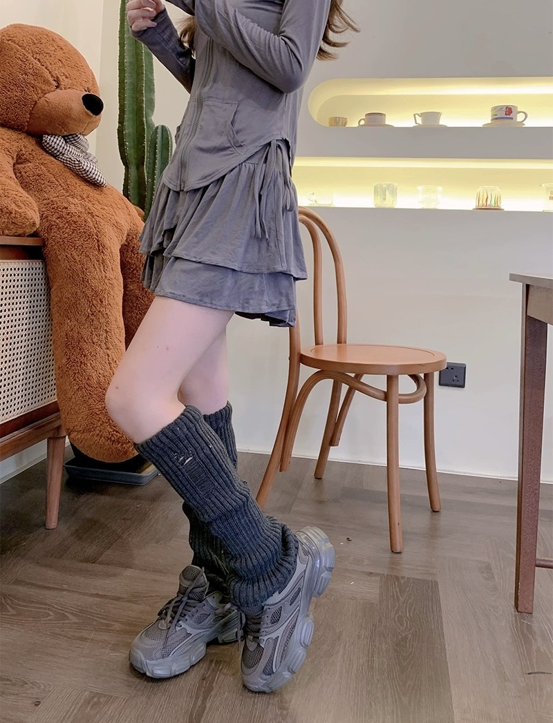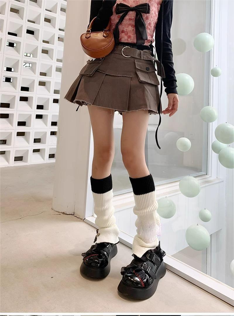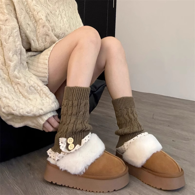 니트 스태킹 양말 여성의 가을과 겨울 일본식 JK 그레이 블랙 스티칭 버튼 양말 따뜻한 중간 길이 양말 대비 색상 분할 다리 커버스토어 가기
