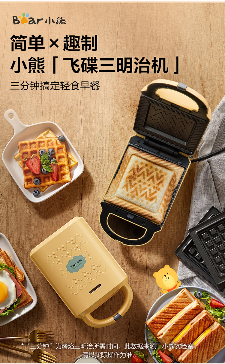 곰 아침 식사 기계 샌드위치 기계 아침 식사 기계 와플 기계 토스트 이동식 및 빨 양면 프레스 구운 DBC-P05B1