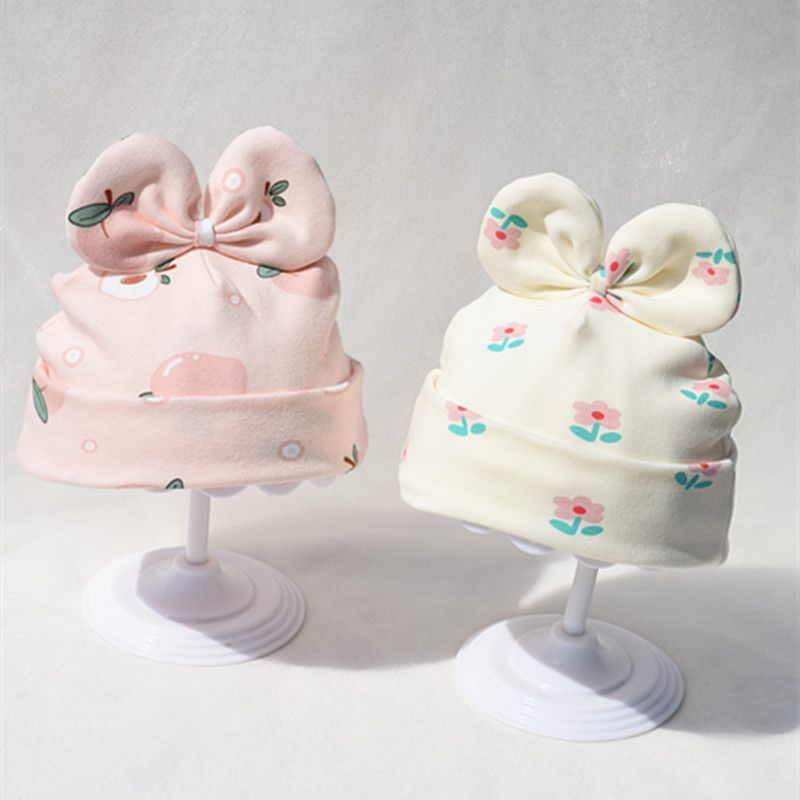신생아 아기 공주 모자 코튼 더블 레이어 가을과 겨울 0-3-6 개월 어린이 활 면화 태아 모자