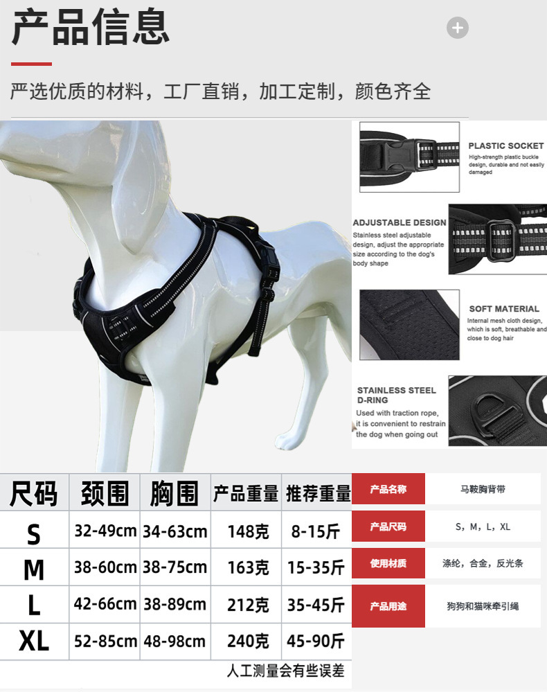 애완 동물 이중 두꺼운 반사 가슴 스트랩 개 폭발 방지 가슴 스트랩 견인 로프 조끼 개 걷는 견인 로프