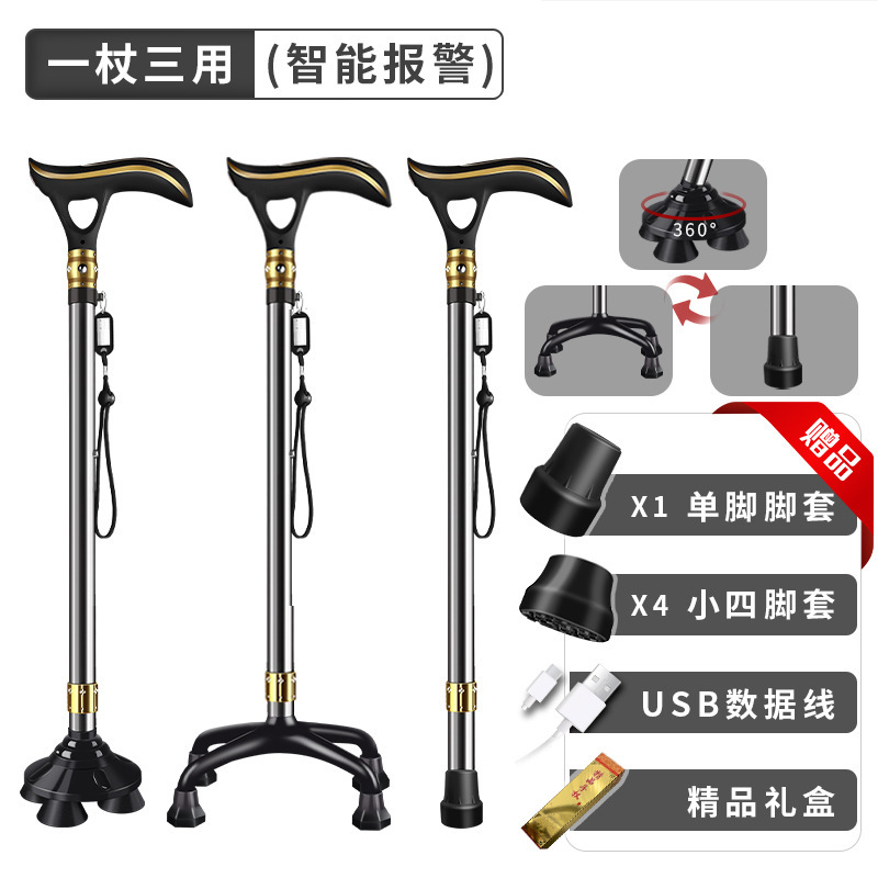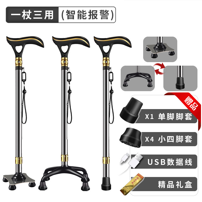 슈퍼 아트 목발 지능형 경보 충전 가벼운 노인 목발 4 다리 미끄럼 방지 다기능 지팡이