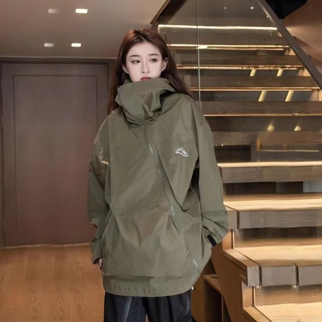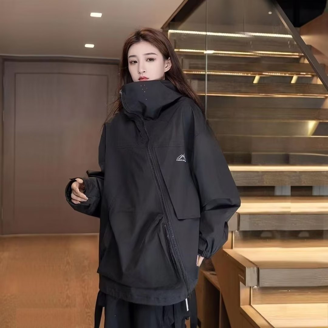 아메리칸 스타일 충전 재킷 남성용 봄과 가을 기능성 후드 느슨한 야외 블랙 작업 등산 재킷