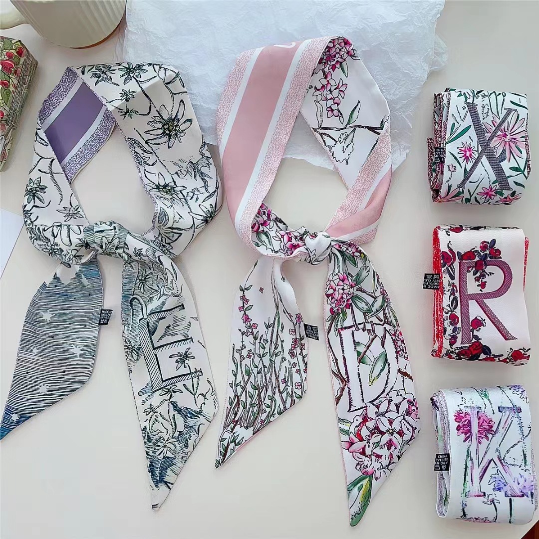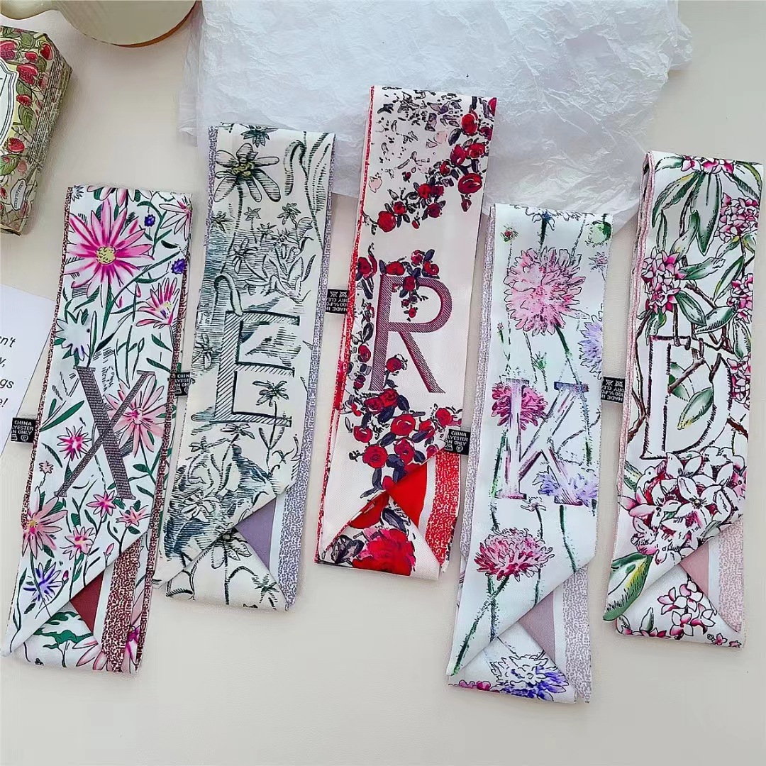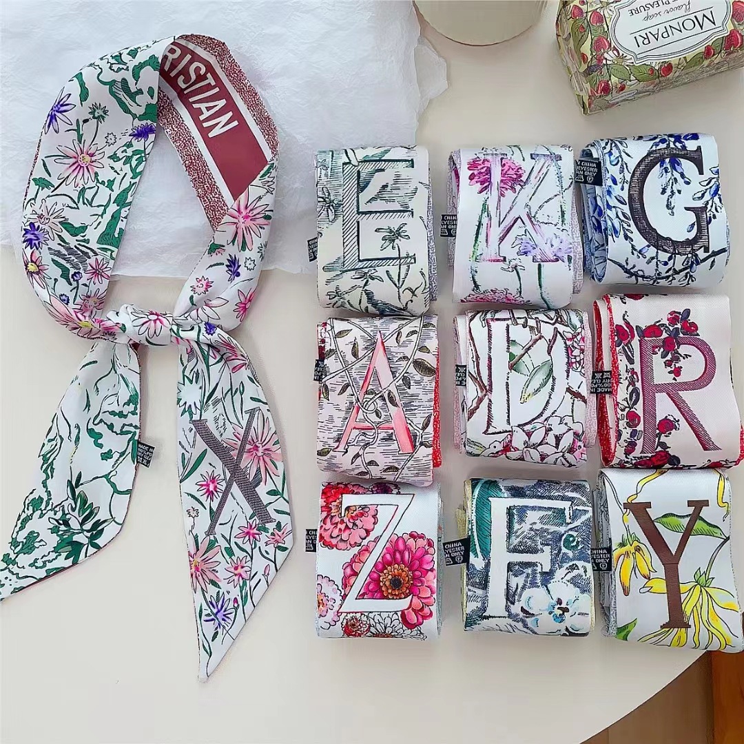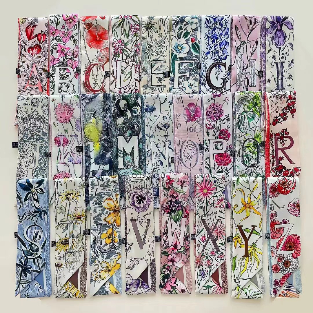 레트로 롱 스몰 실크 스카프 헤어 벨트의 새로운 한국어 버전 여성용 타이 백 핸들 핸드 기프트 26 영어 편지 리본 도매