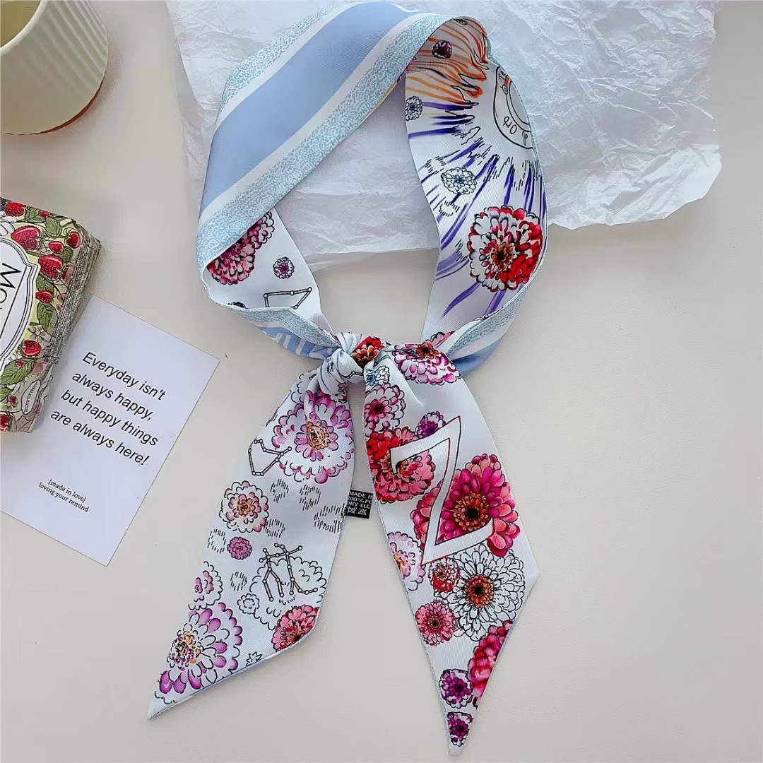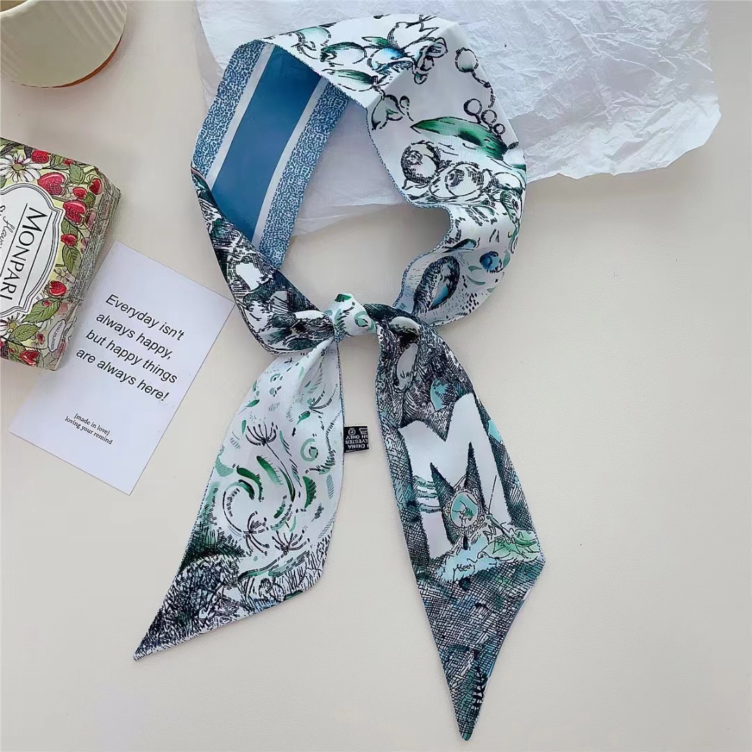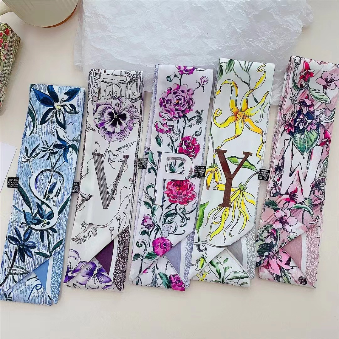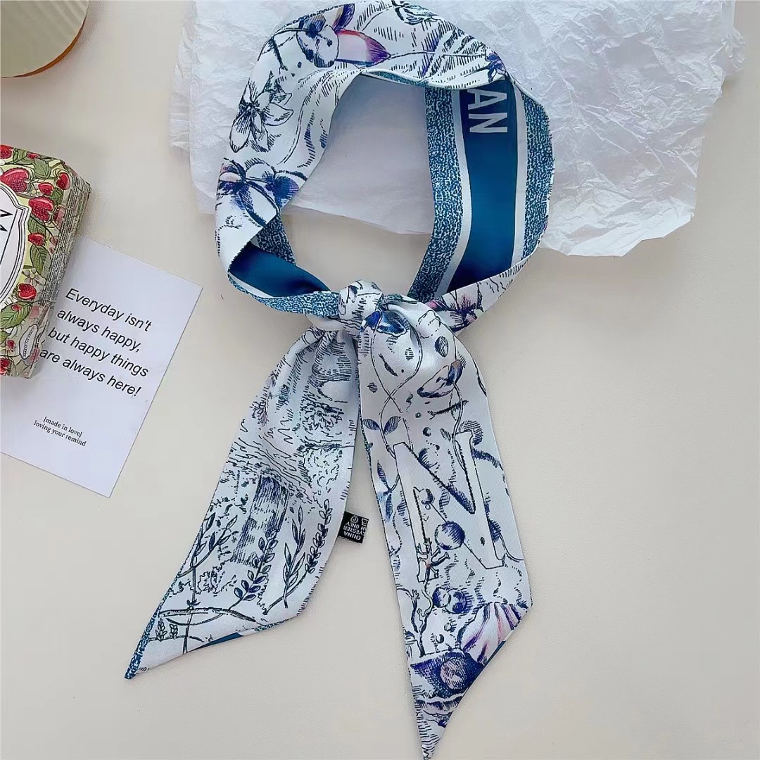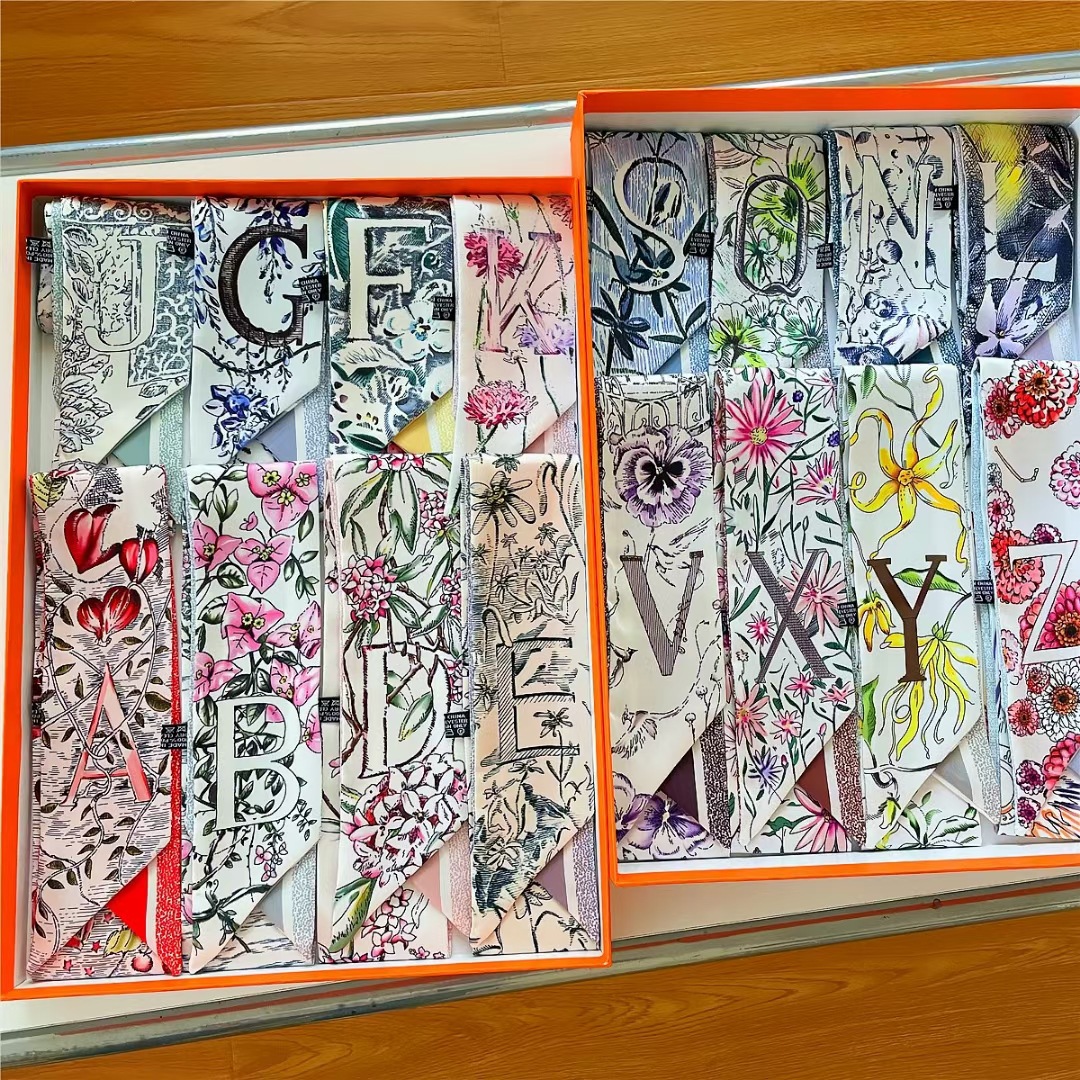 레트로 롱 스몰 실크 스카프 헤어 벨트의 새로운 한국어 버전 여성용 타이 백 핸들 핸드 기프트 26 영어 편지 리본 도매