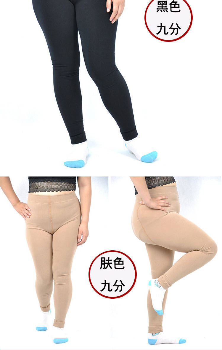 봄 가을과 겨울 플러스 벨벳 팬티 스타킹 9 점 다리 팬티 스타킹 중간 두께 통통녀 하이 웨이스트 여성의 내부 및 외부 착용 플러스 사이즈 바지스토어 가기