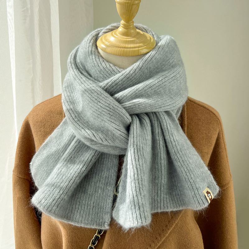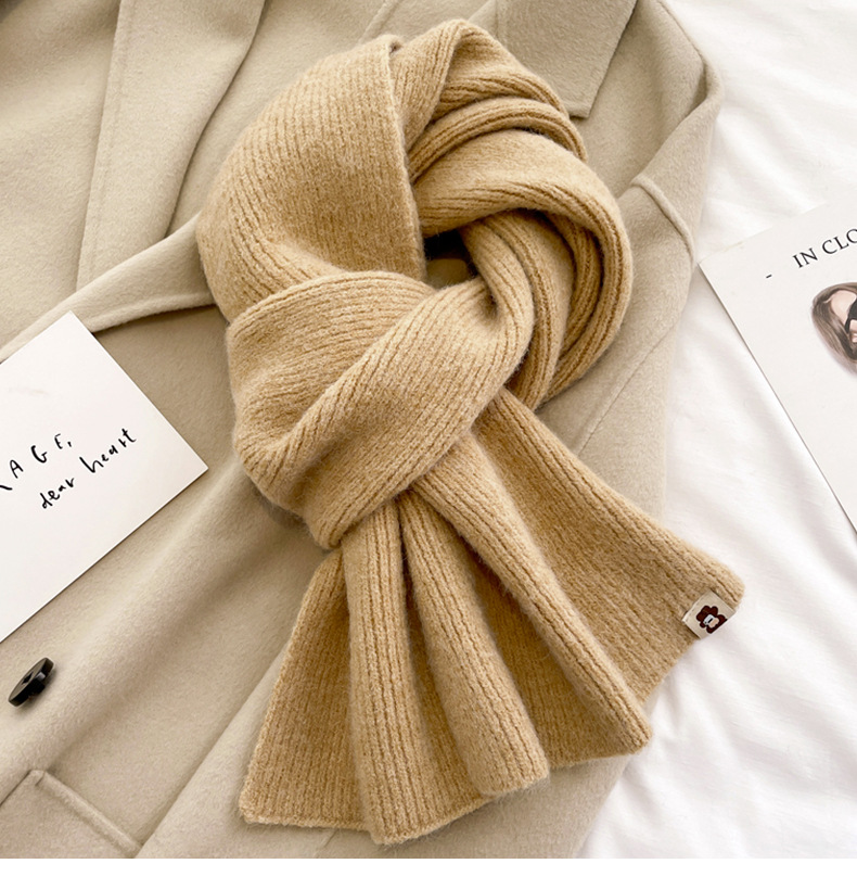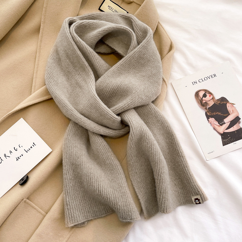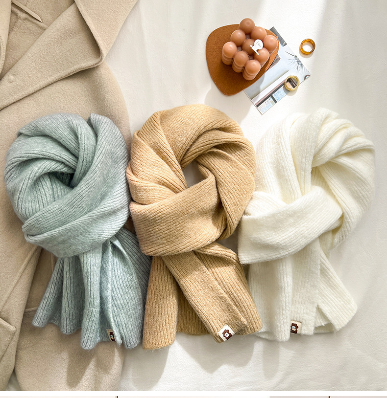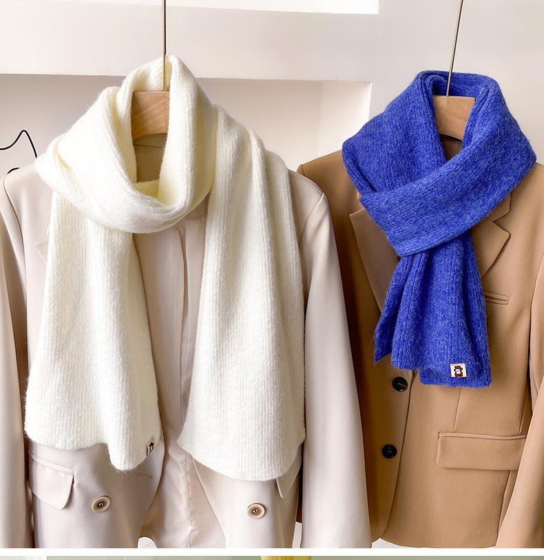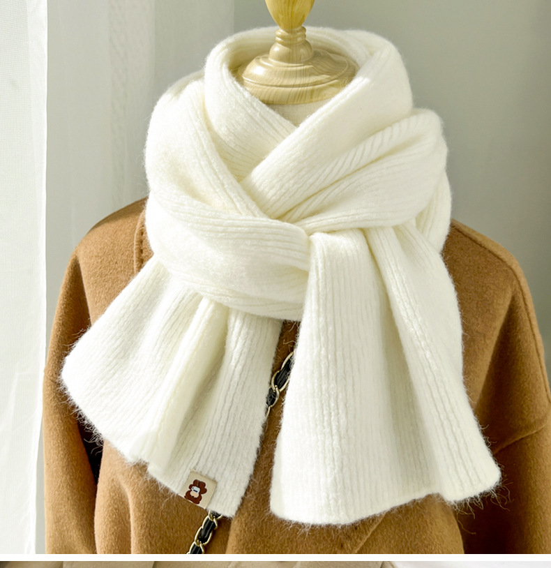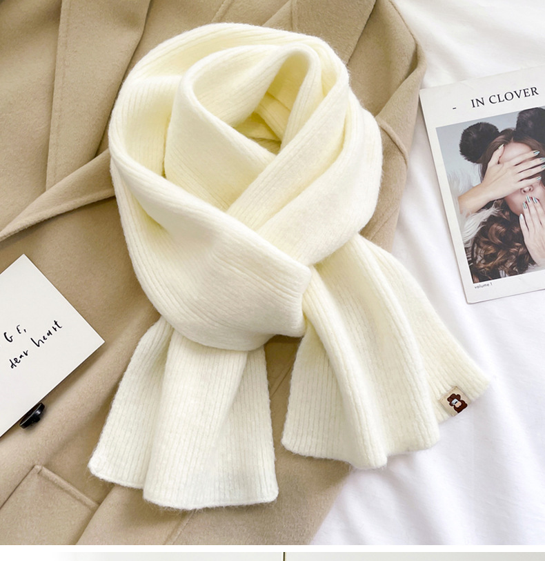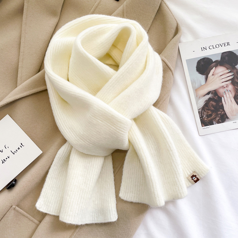 니트 울 스카프 소녀 가을과 겨울 순수한 우유 흰색 아이보리 짧은 스카프 목 보호 플러시 귀여운 두꺼운 부드러운 왁스스토어 가기