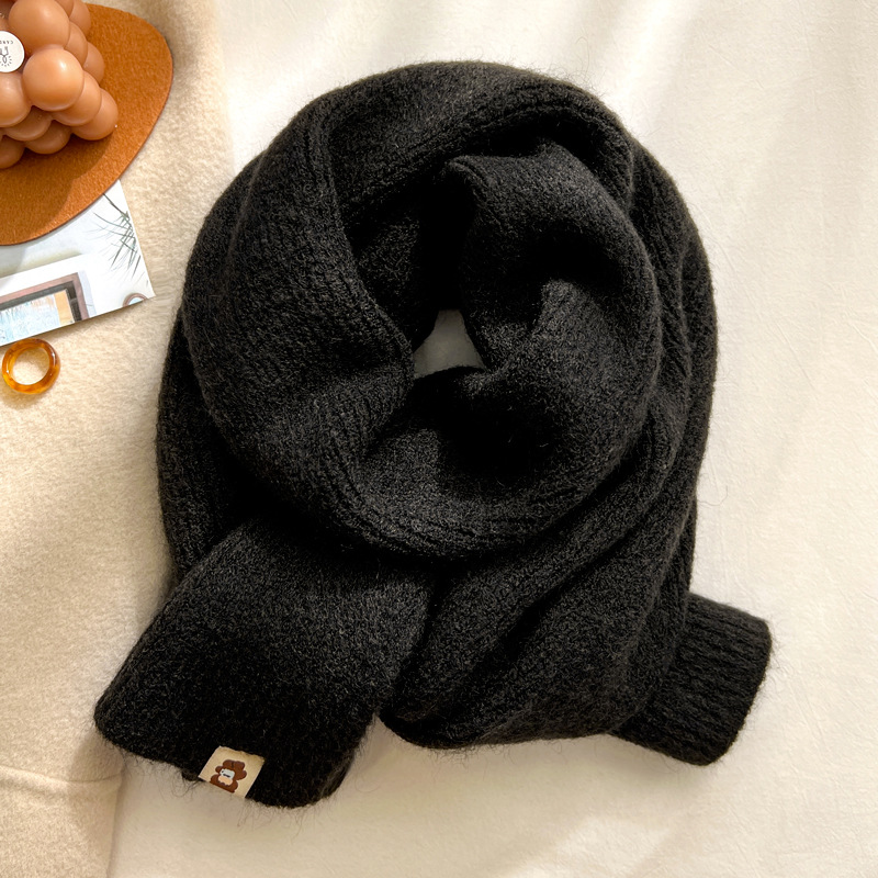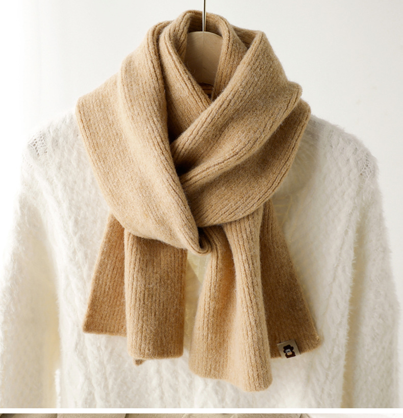 니트 울 스카프 소녀 가을과 겨울 순수한 우유 흰색 아이보리 짧은 스카프 목 보호 플러시 귀여운 두꺼운 부드러운 왁스