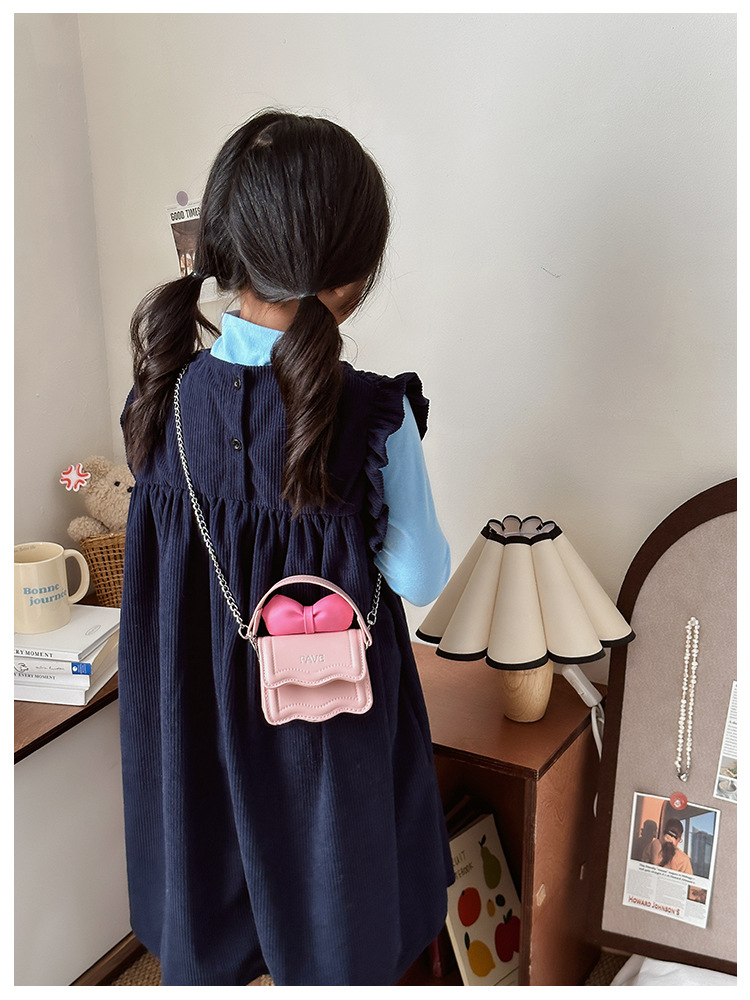 가을 새로운 한국 미니 어린이 여아 숄더백 보우 체인 크로스 바디 스몰 백 부모-자식 가방 여성 가방