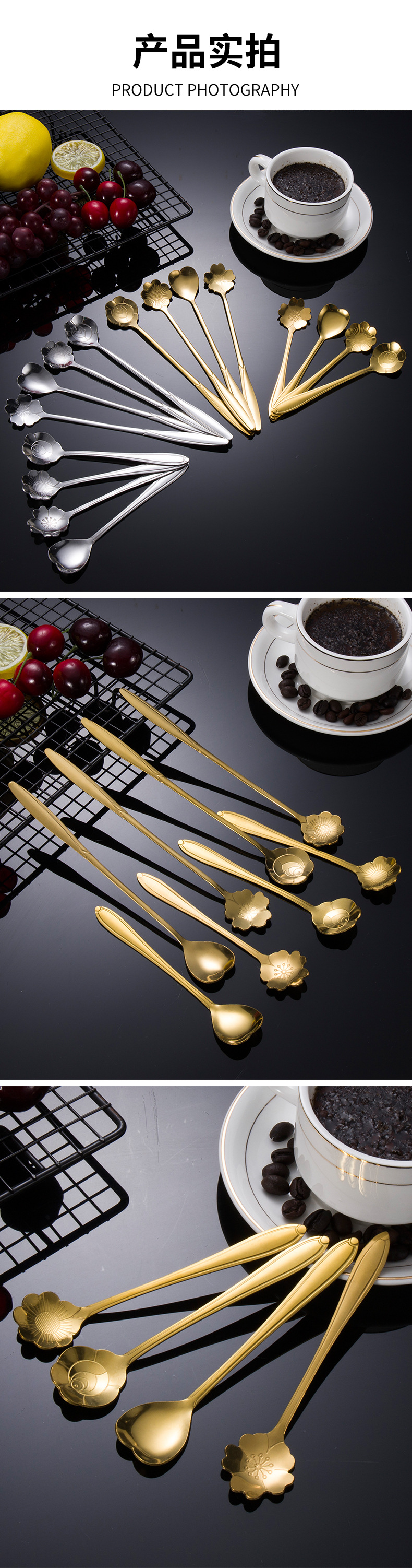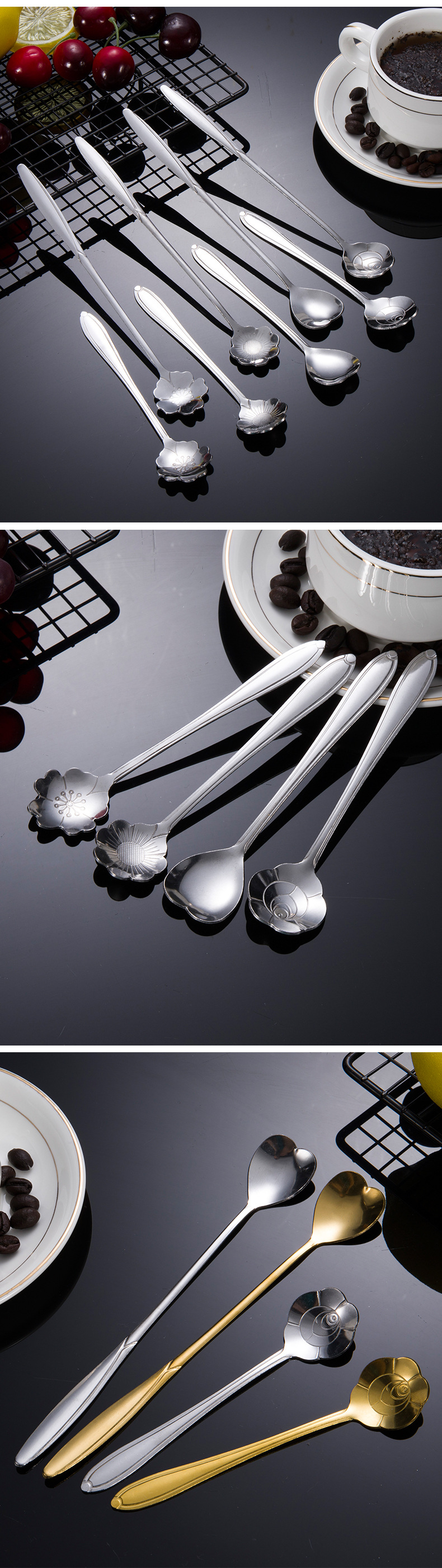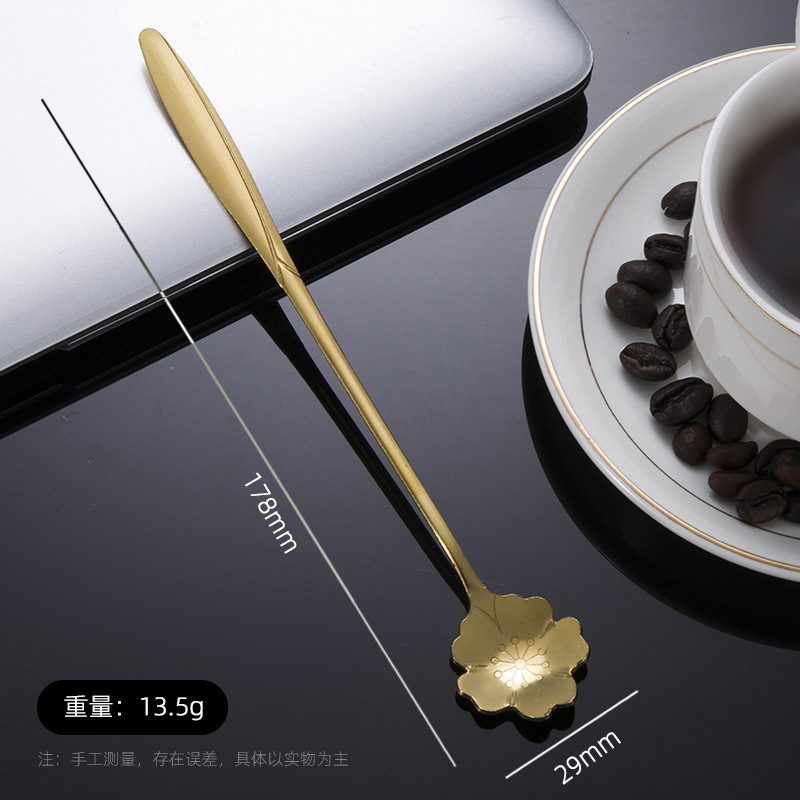 스테인리스 벚꽃 스푼, 긴 손잡이 아이스크림 스푼, 커피 믹싱 스푼, 디저트 꽃 모양 스푼, 금색 작은 스푼, 선물용 스푼