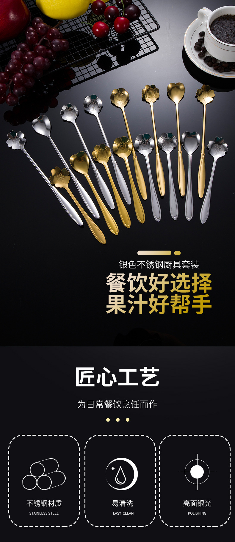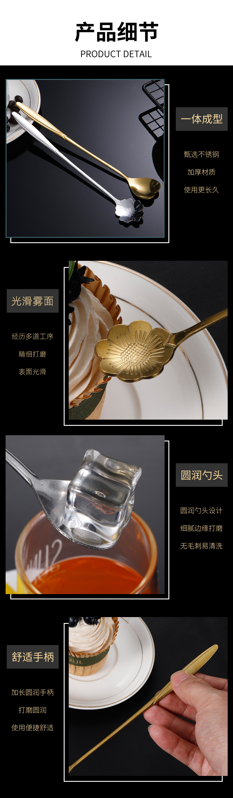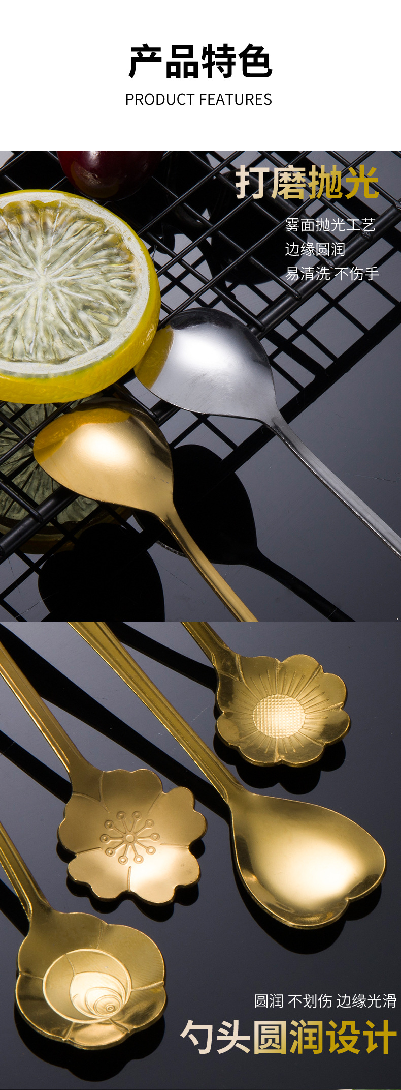 스테인리스 벚꽃 스푼, 긴 손잡이 아이스크림 스푼, 커피 믹싱 스푼, 디저트 꽃 모양 스푼, 금색 작은 스푼, 선물용 스푼