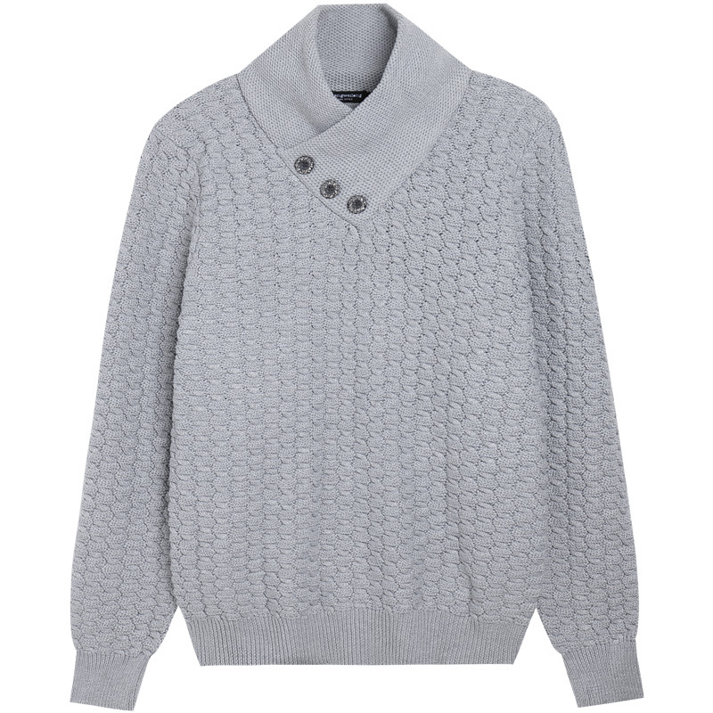 새로운 패션 도시 면 크로스 칼라 긴 소매 남자의 두꺼운 니트 셔츠 단색 자카드 느슨한 스웨터