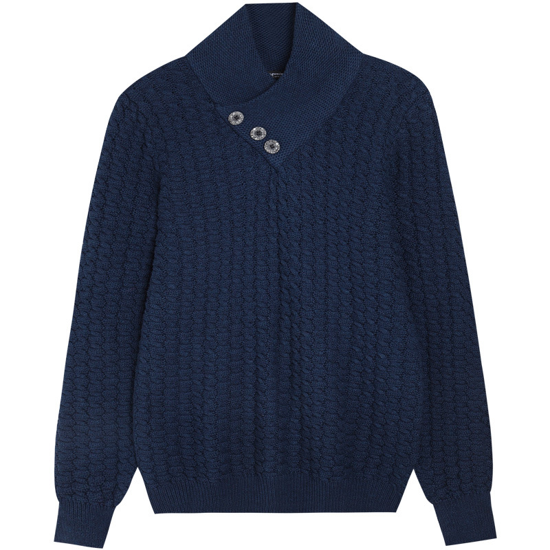 새로운 패션 도시 면 크로스 칼라 긴 소매 남자의 두꺼운 니트 셔츠 단색 자카드 느슨한 스웨터스토어 가기