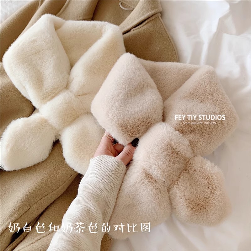 플러시 스카프 여성용 겨울 한국식 모든 경기 경추 목 보호 마오마오 일본식 작은 스카프 따뜻한 부드러운 소녀의 가을과 겨울 칼라스토어 가기