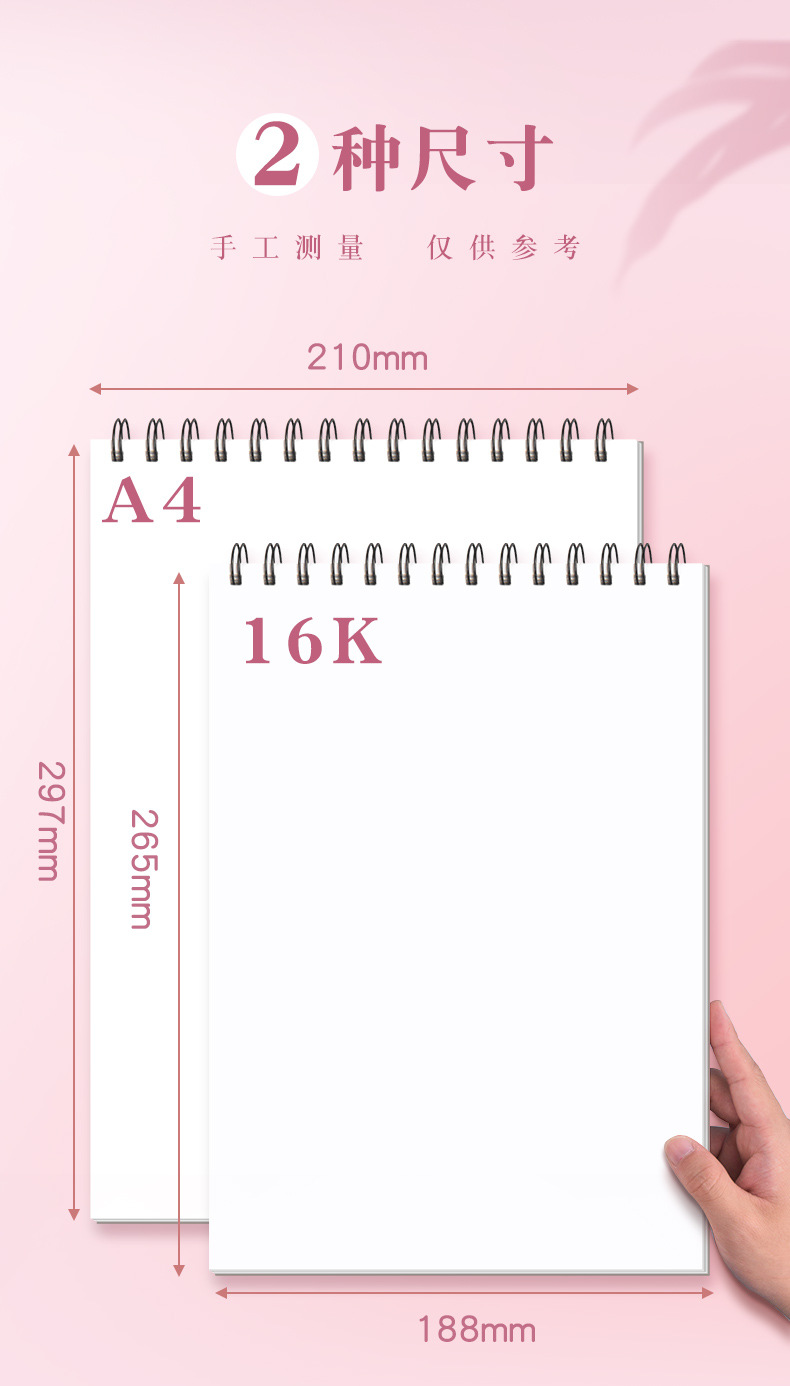 A4 두꺼운 스케치 북 16K 코일 드로잉 북 그림책 빈 스케치 북 학생을위한 손으로 그린 책 아트 북