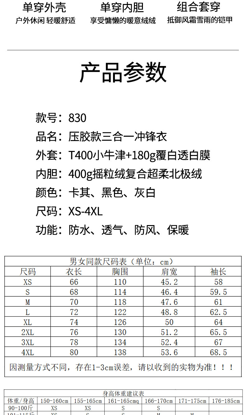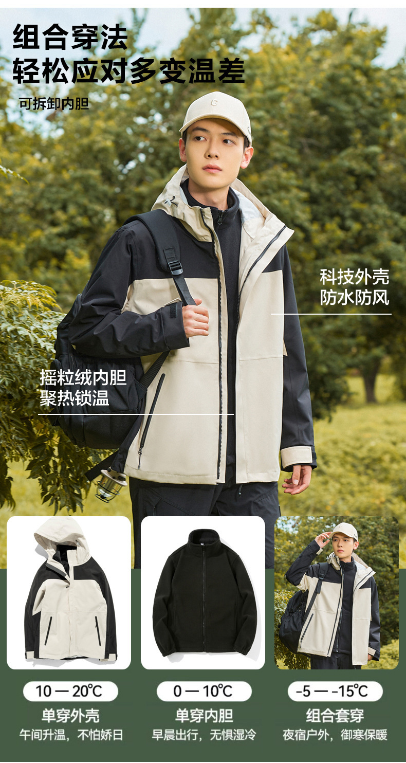 25 가을 겨울 남성 및 여성 재킷 국가 표준 32614 3-in-one 분리형 이음매없는 접착 레인 재킷 방수