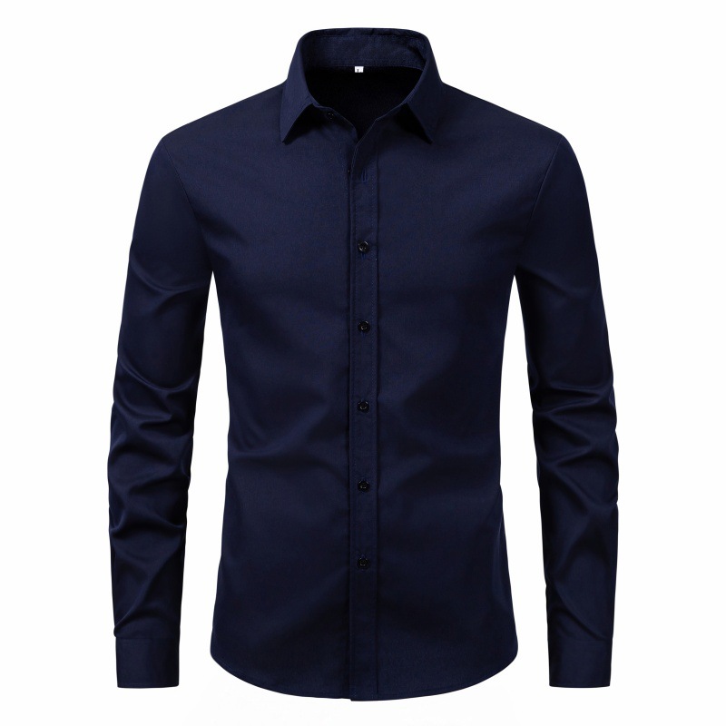 2025 대외 무역 남성 상의 및 셔츠, 크로스보더 패션, 슬림핏, 단색, 남성 긴팔, 현물 도매, 비즈니스 및 통근스토어 가기