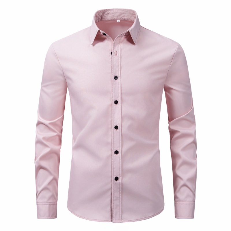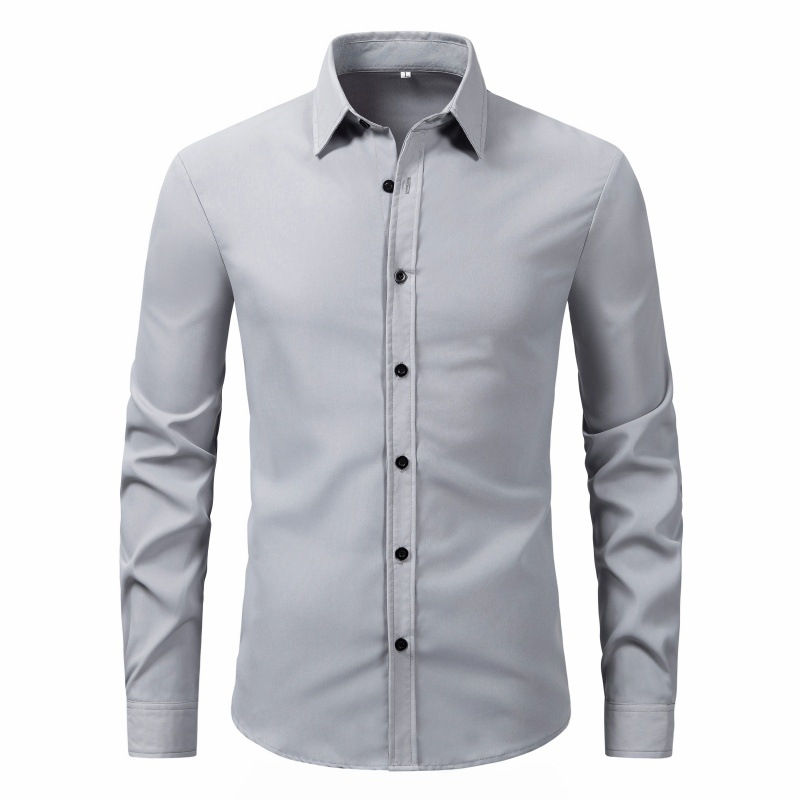 2025 대외 무역 남성 상의 및 셔츠, 크로스보더 패션, 슬림핏, 단색, 남성 긴팔, 현물 도매, 비즈니스 및 통근